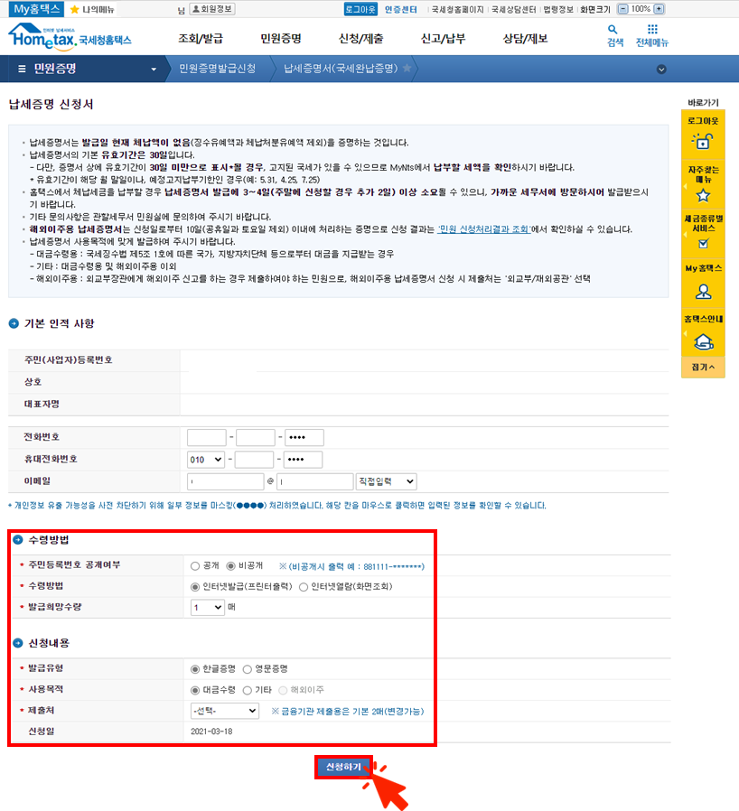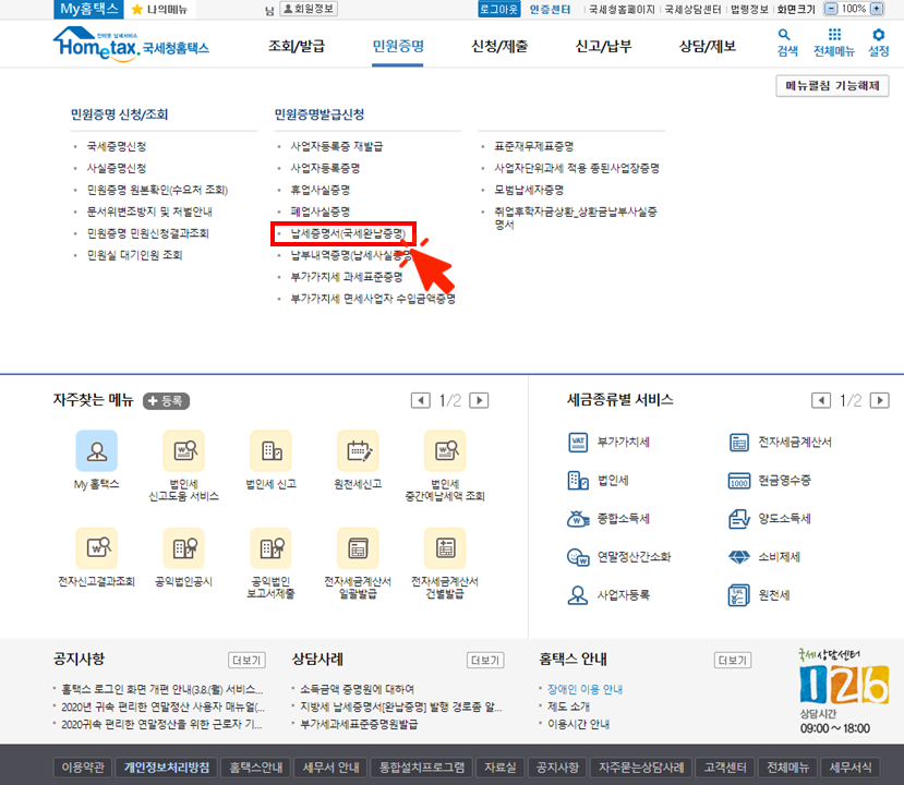 그럼 국세완납증명서가 필요하신 분들은 아래 순서대로 따라 해 주세요.