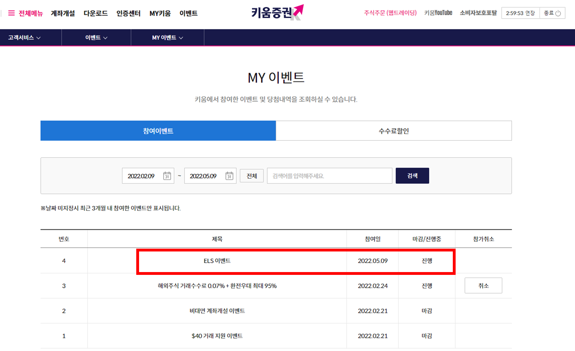 그리고 이벤트 신청 후 꼭 이벤트 신청이 되었는지 확인하고 ELS 청약하세요~