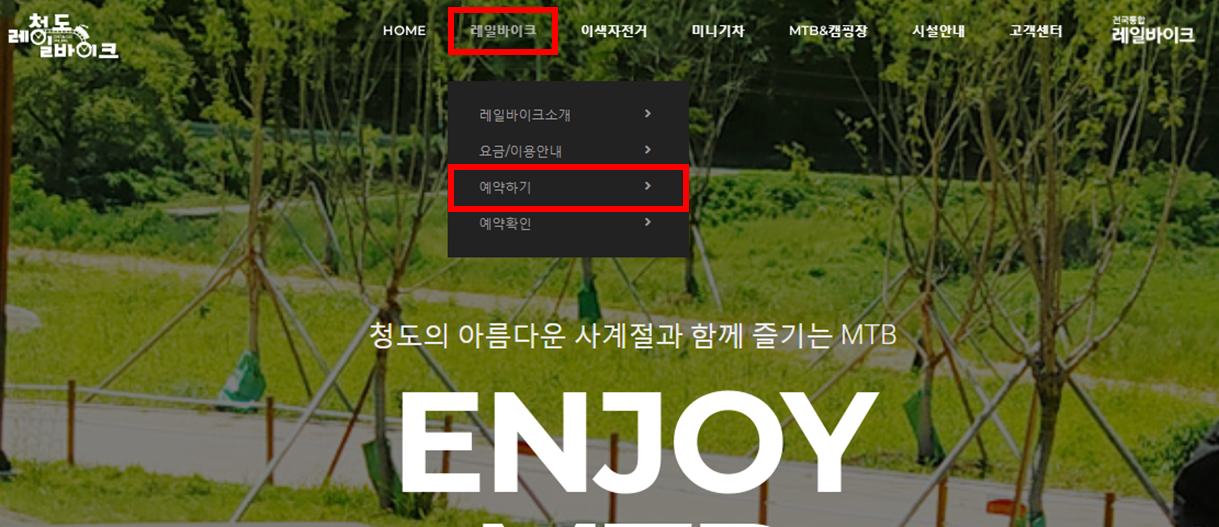 그럼 홈페이지로 '청도레일바이크' 예약하는 방법 알려드려요~