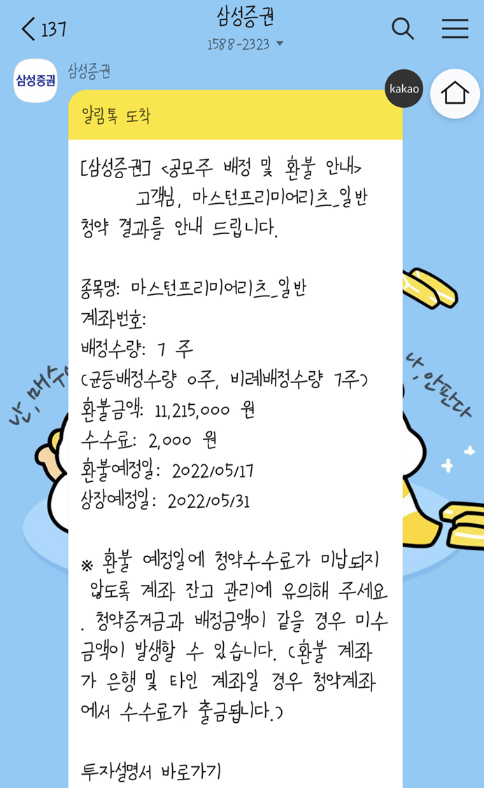 공모가 5천원, 7주,,, 거기에 수수료는 무려 2천원이라니...