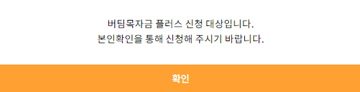 버팀목 자금 플러스+ 유의사항 안내 팝업창이 뜹니다.