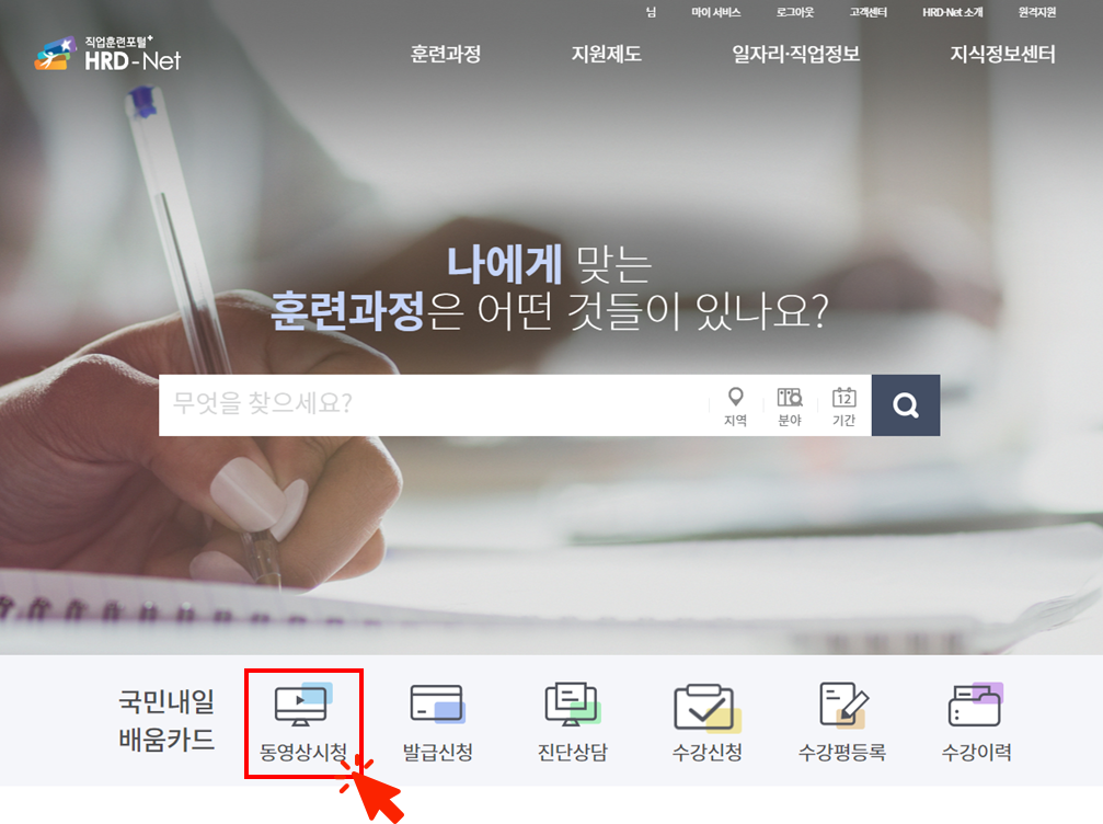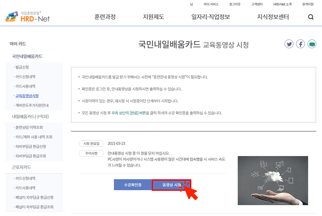 내일배움카드 신청 전에 동영상 시청, 훈련과정을 담아두어야 합니다.