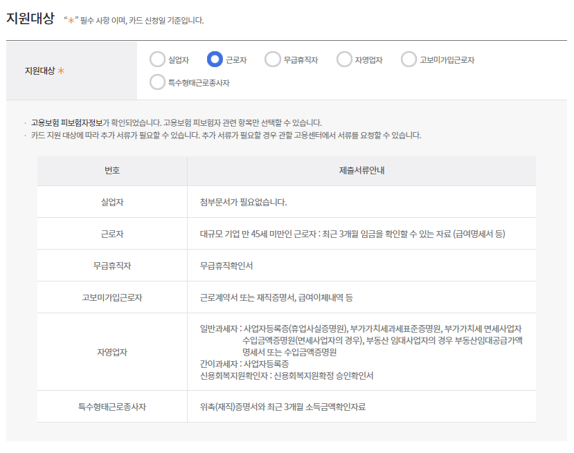 - 실업자, 근로자, 특수형태 근로종사자, 자영업자