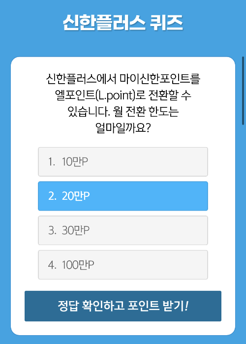Q: 신한플러스에서 마이신한포인트를 엘포인트(L.point)로 전환할 수 있습니다. 월 전환 한도는 얼마일까요?
