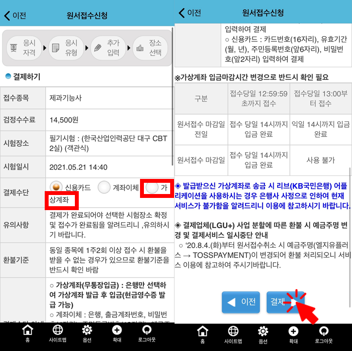 4. 시험비 결제는 무조건 가상계좌