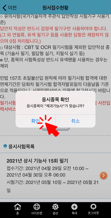 6. 응시 항목 최종 확인