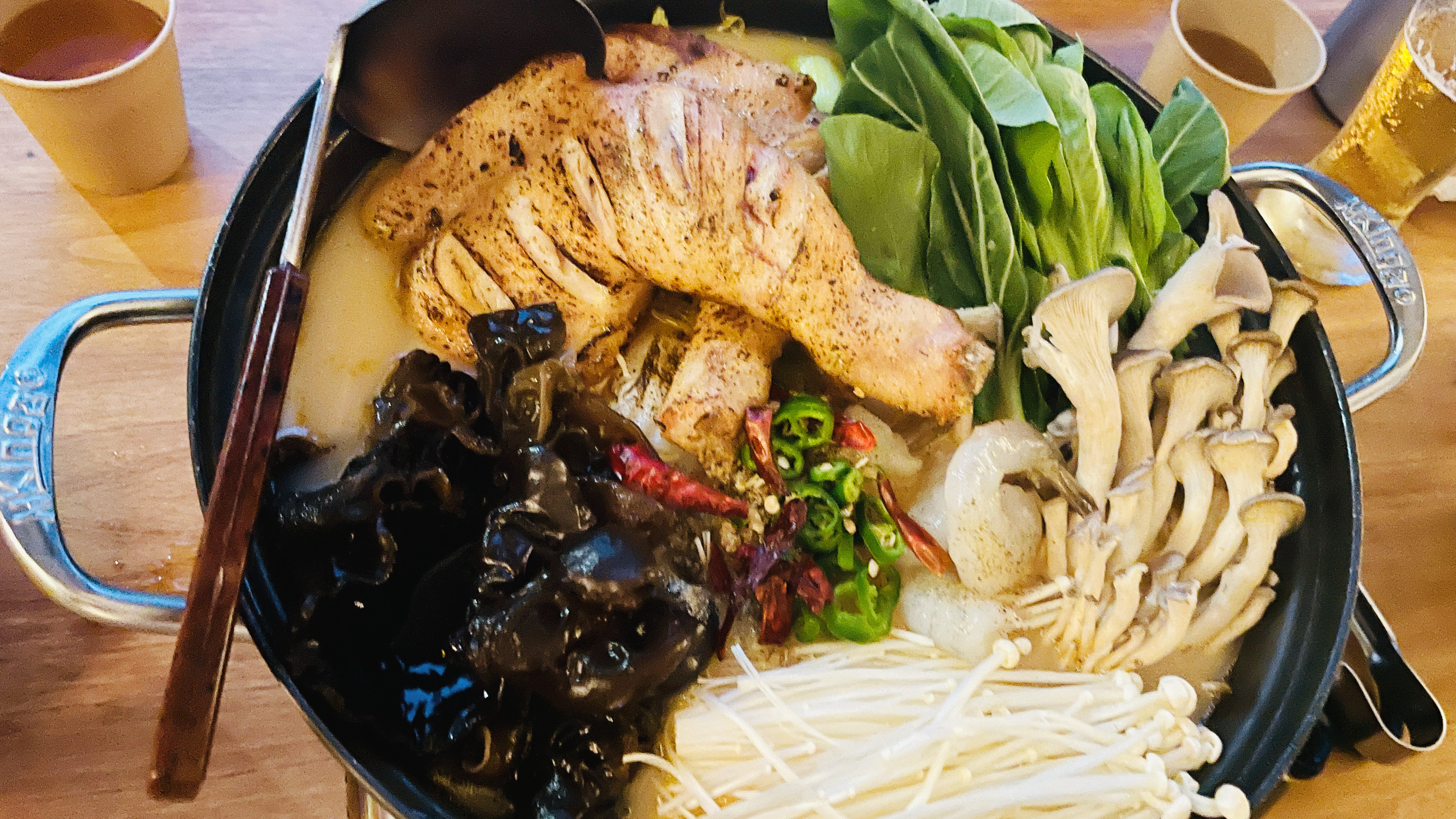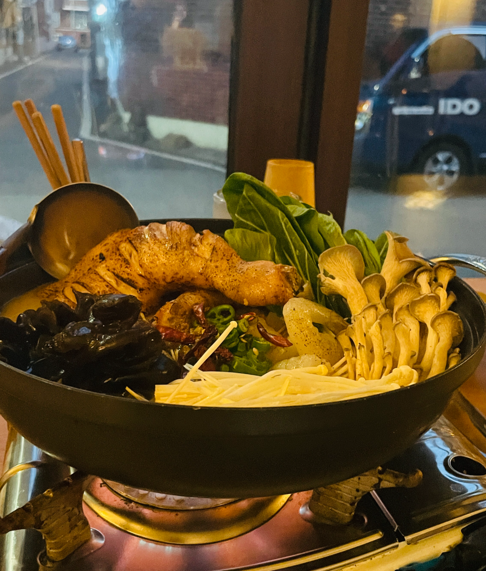 닭다리..아니 오리다리만한 닭다리가 2개 들어가있고 새우도 엄청 많이 들어가 있었어요.