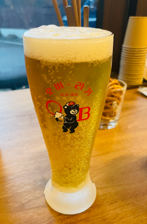 사진에는 보이지 않는데 생맥주 잔이 너무 차가워서