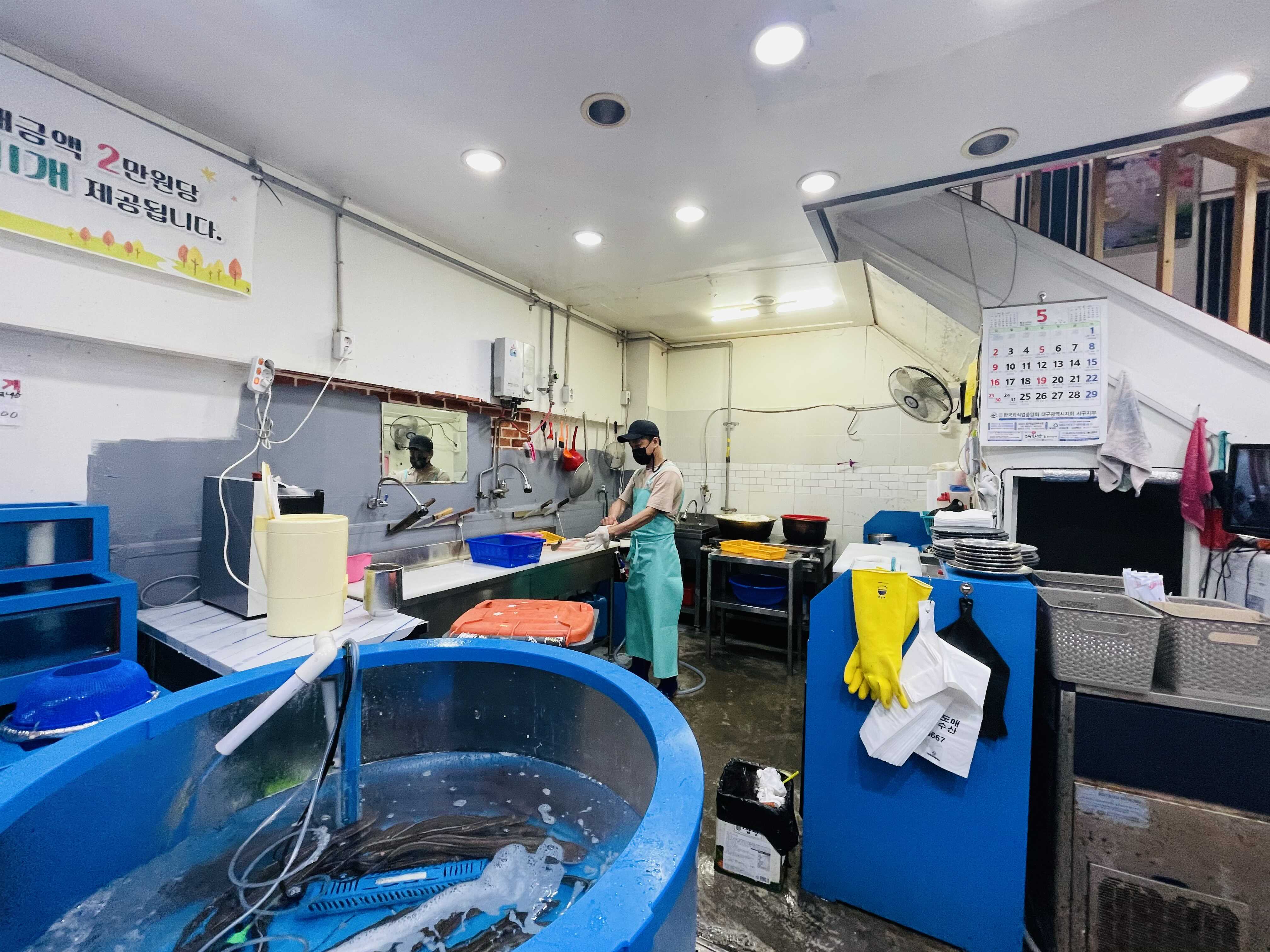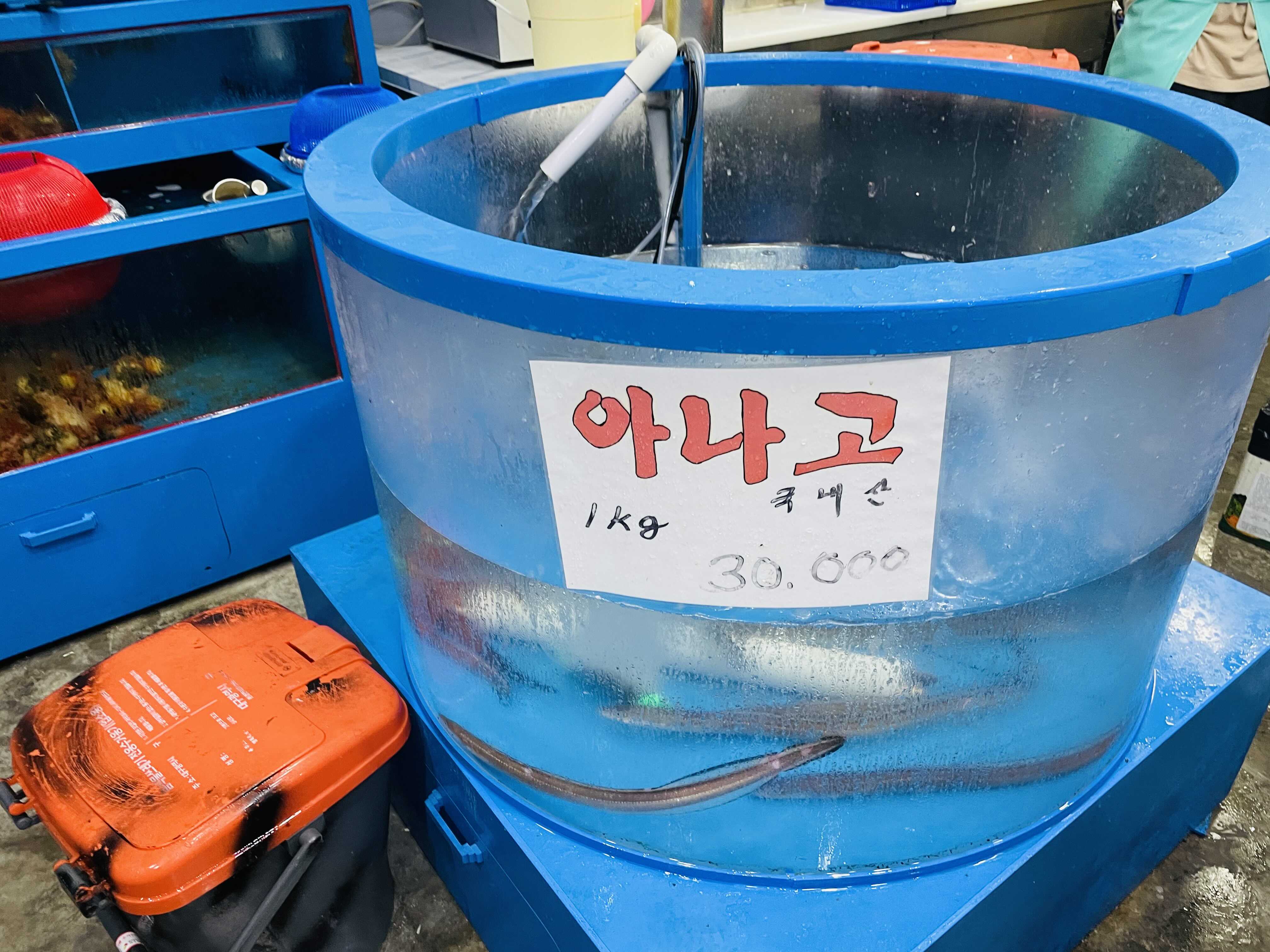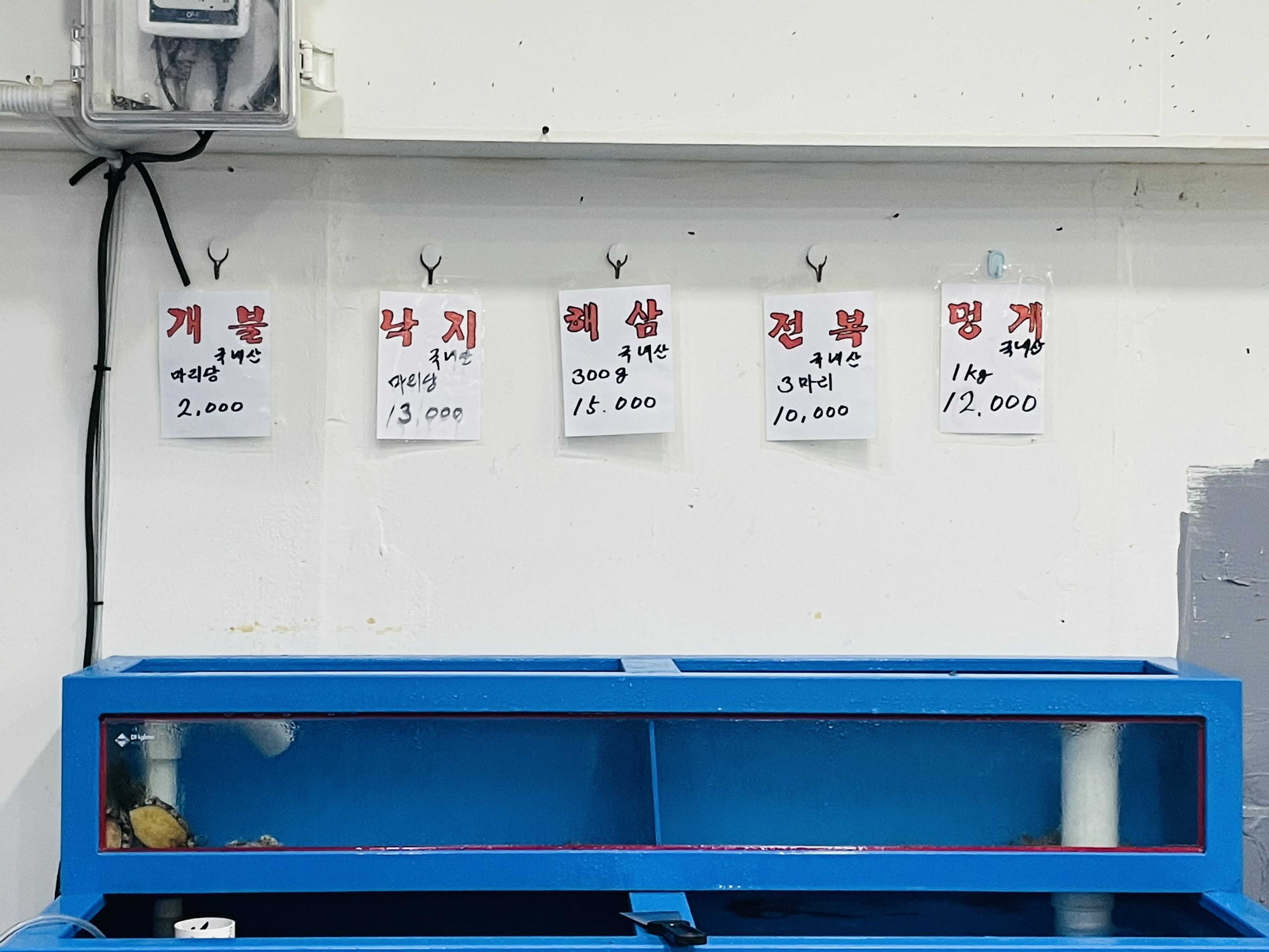 들어서면 바로 수족관이 보이고 그날 시세를 알 수 있어요.