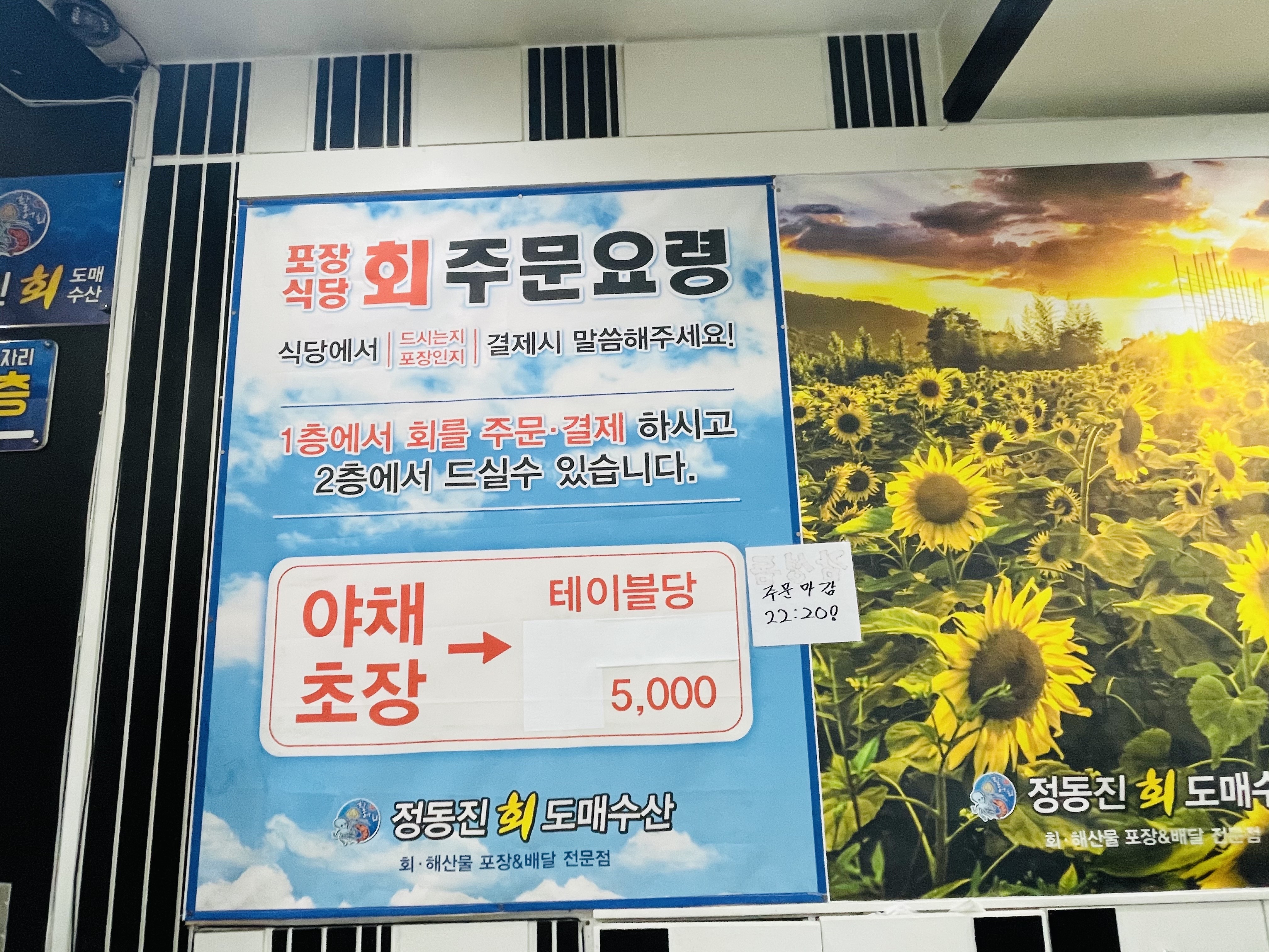 포장 전문 횟집이지만 2층에서 테이블 이용 5천 원만 내면 먹을 수 있어요.