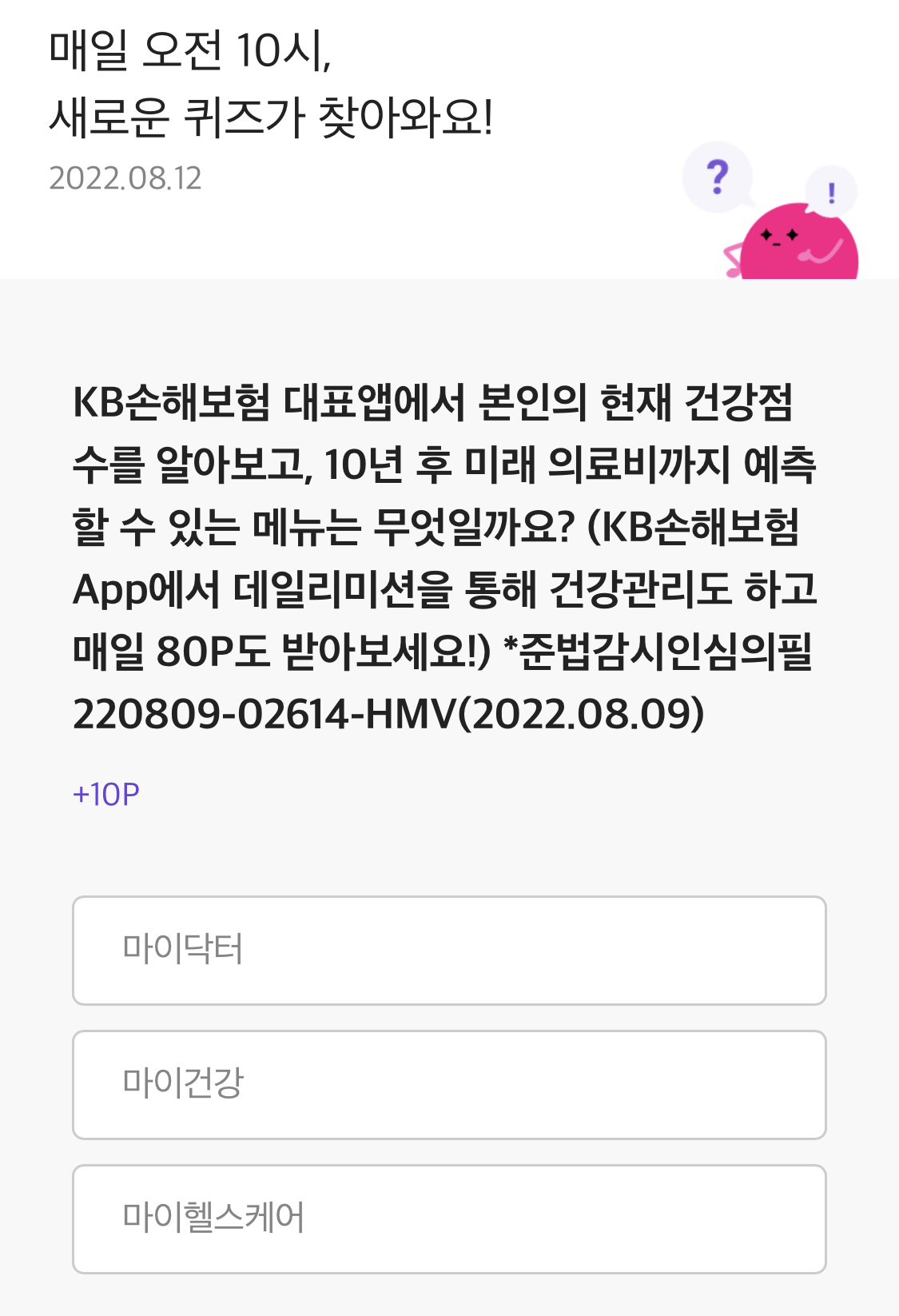 Q: kb손해보험 대표앱에서 본인의 현재 건강점수를 알아보거, 10년 후 미래 의료비까지 예측할 수 있는 메뉴는 무엇일까요?
