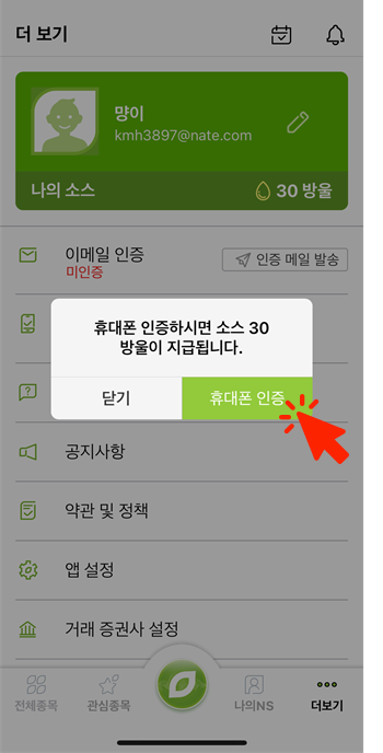 가입 후 휴대폰 인증해줍니다.