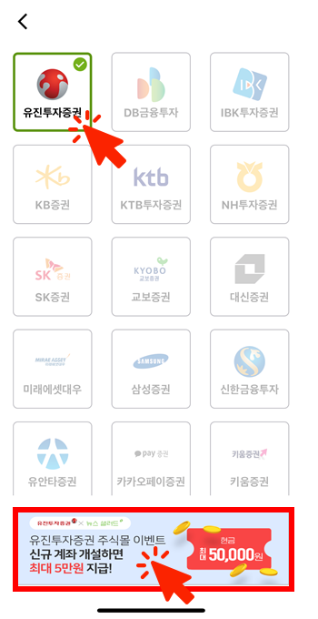 아래와 같이 화면이 뜨면 유진투자증권 선택 후