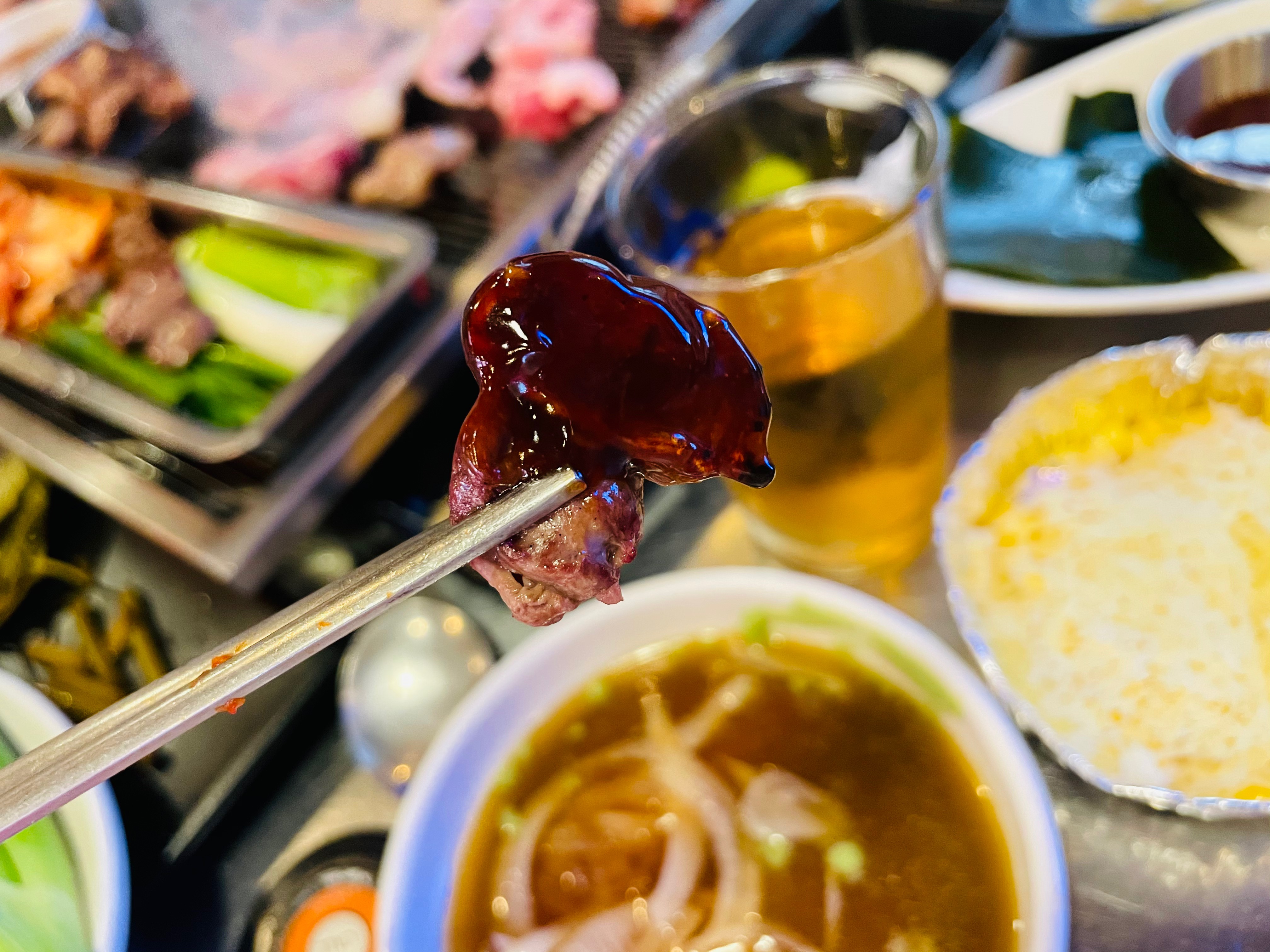 염통꼬치는 데리야끼소스에 찍어서 먹었어요.