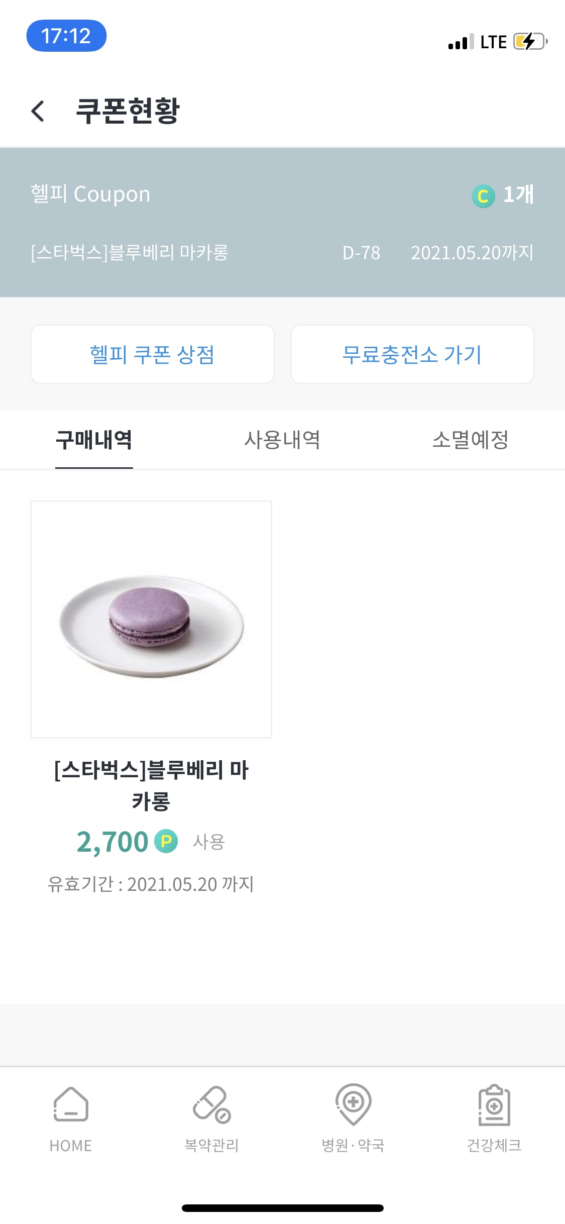 추천인 포인트 소멸이 한 달 정도라 소멸되기 전에 스타벅스 마카롱 하나 교환했어요~