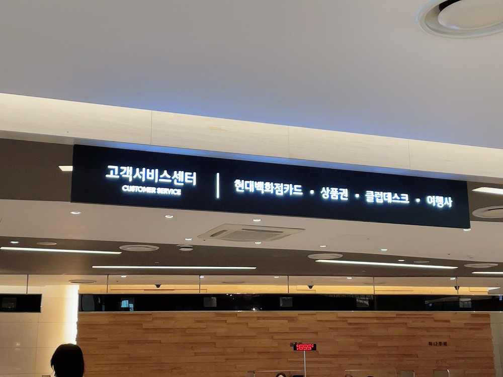 현대백화점 고객서비스센터 내 상품권 데스크로 가면 돼요.