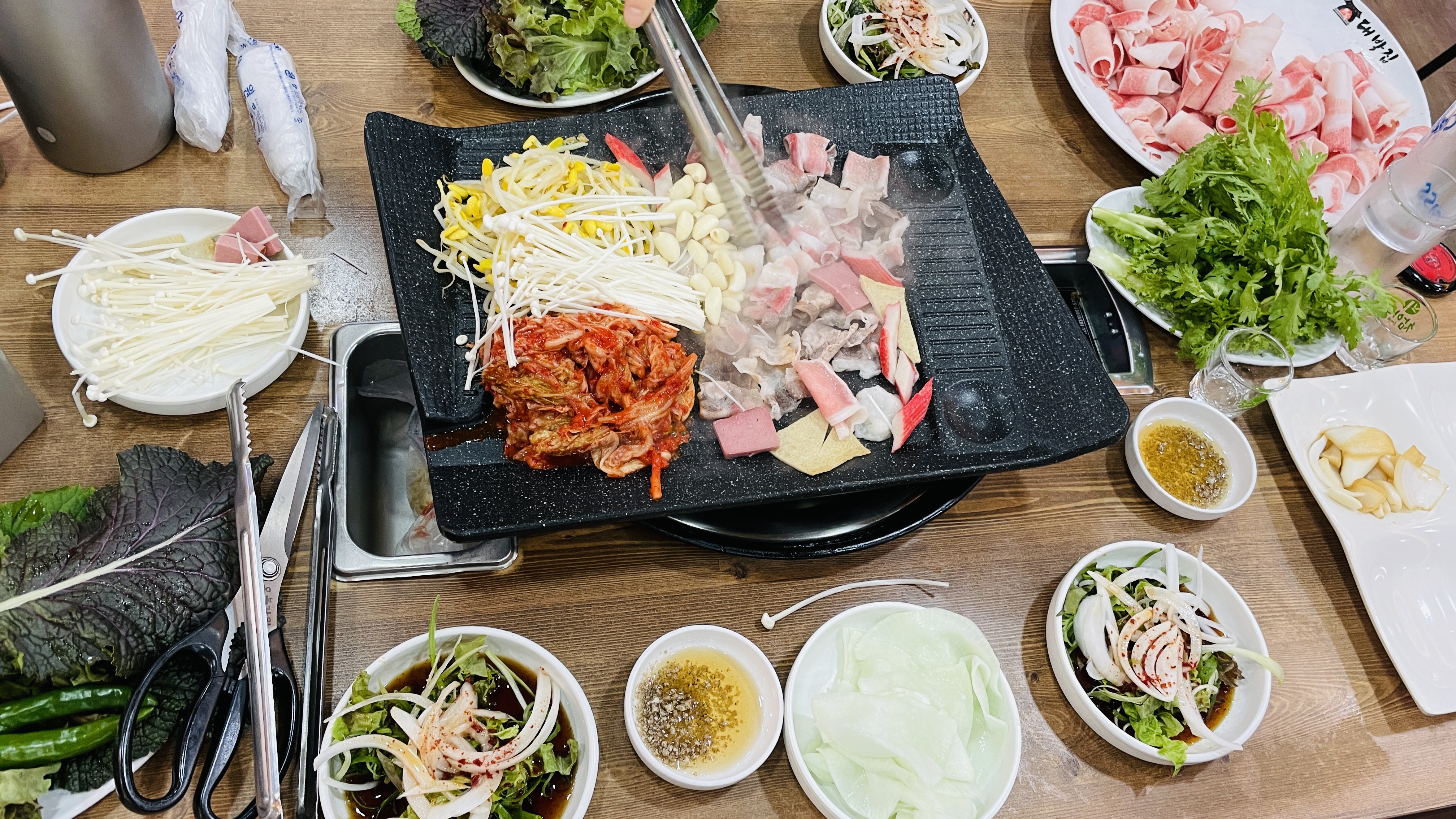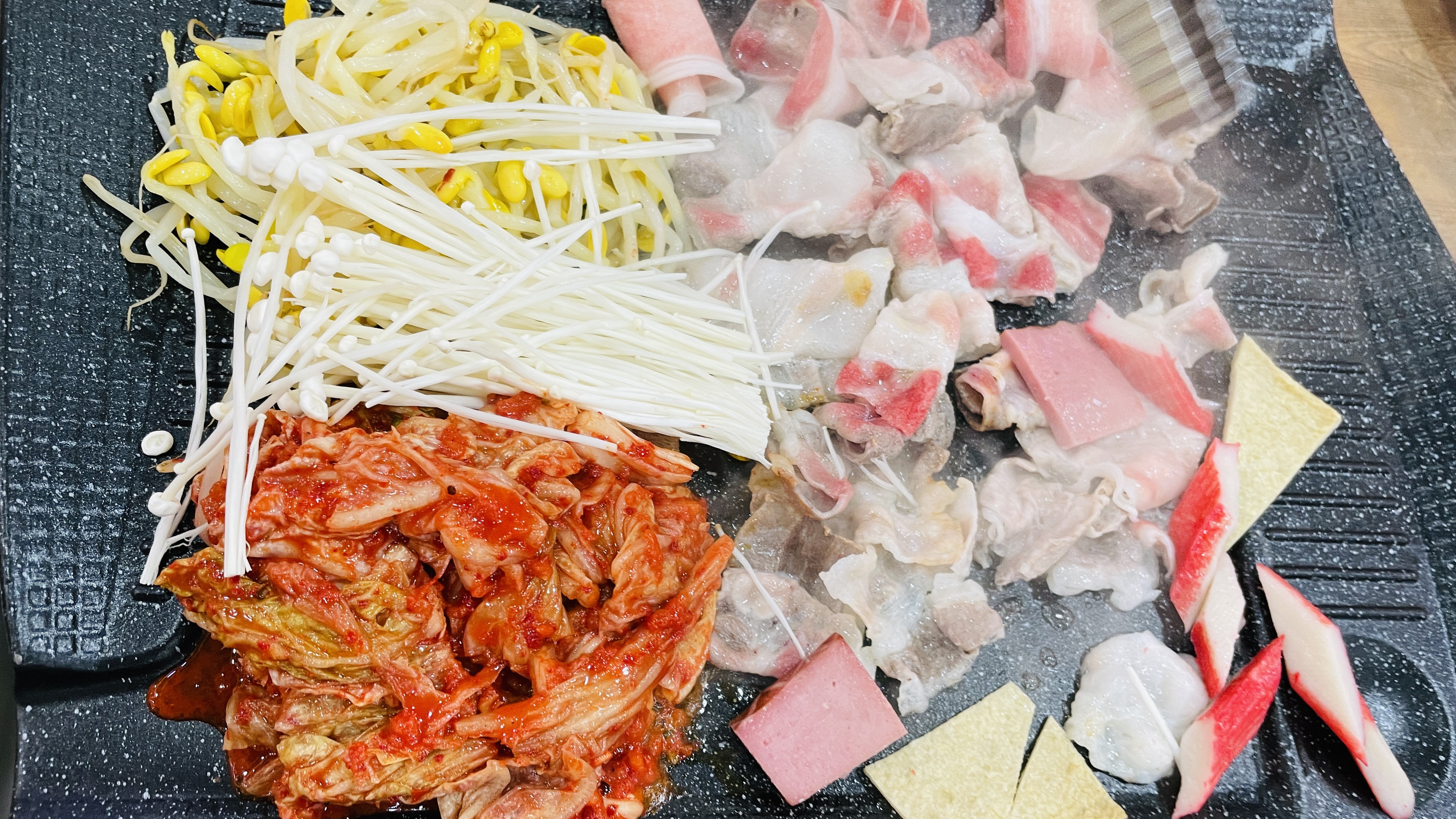 불판에 반은 김치, 콩나물 올려주고 반은 대패삼겹살 올려서 구워주는거 대박집 국룰인거 알고 계지쥬???