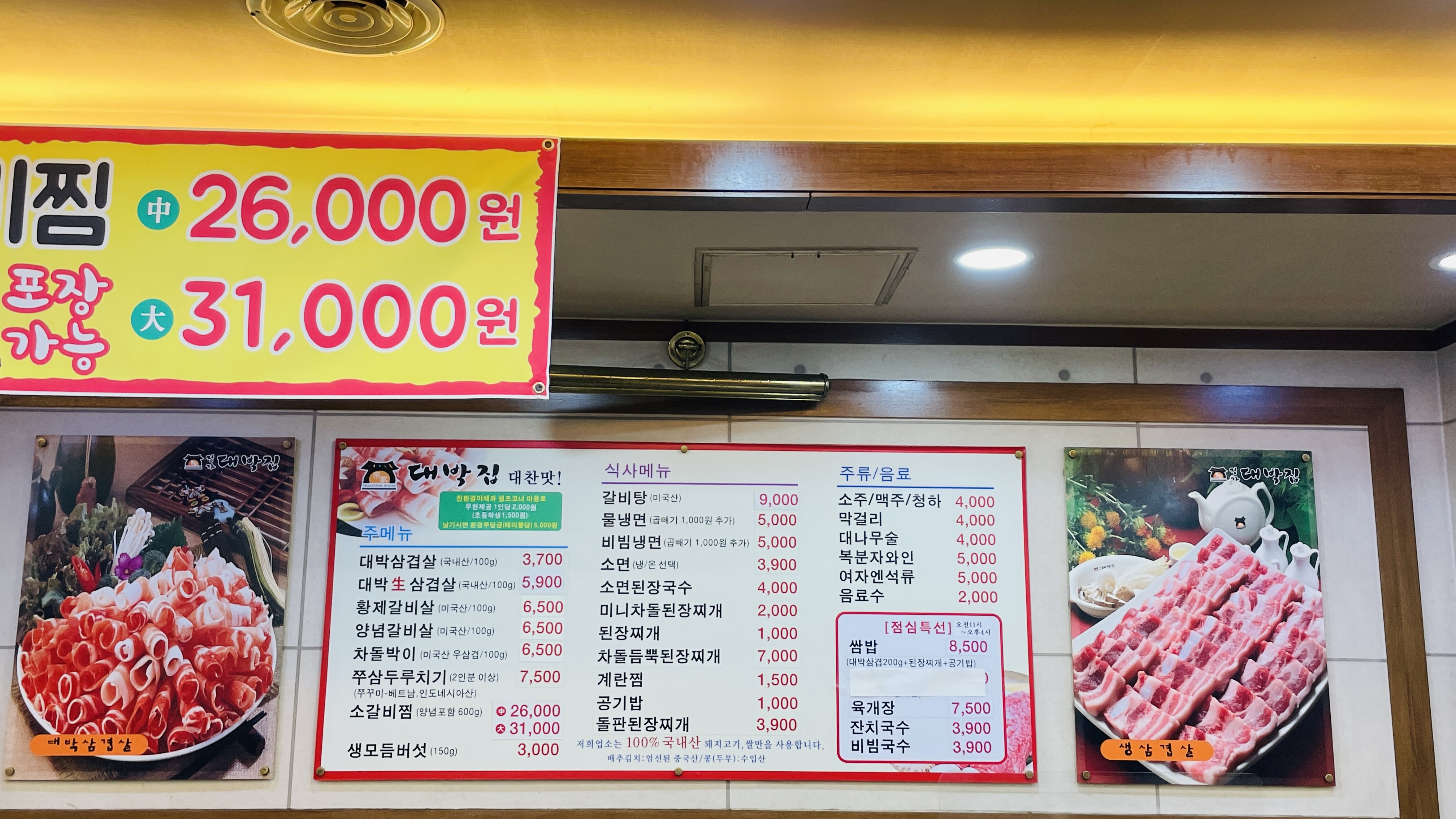 - 대박삼겹살 3,700원 / 대박생삼겹살 5,900원