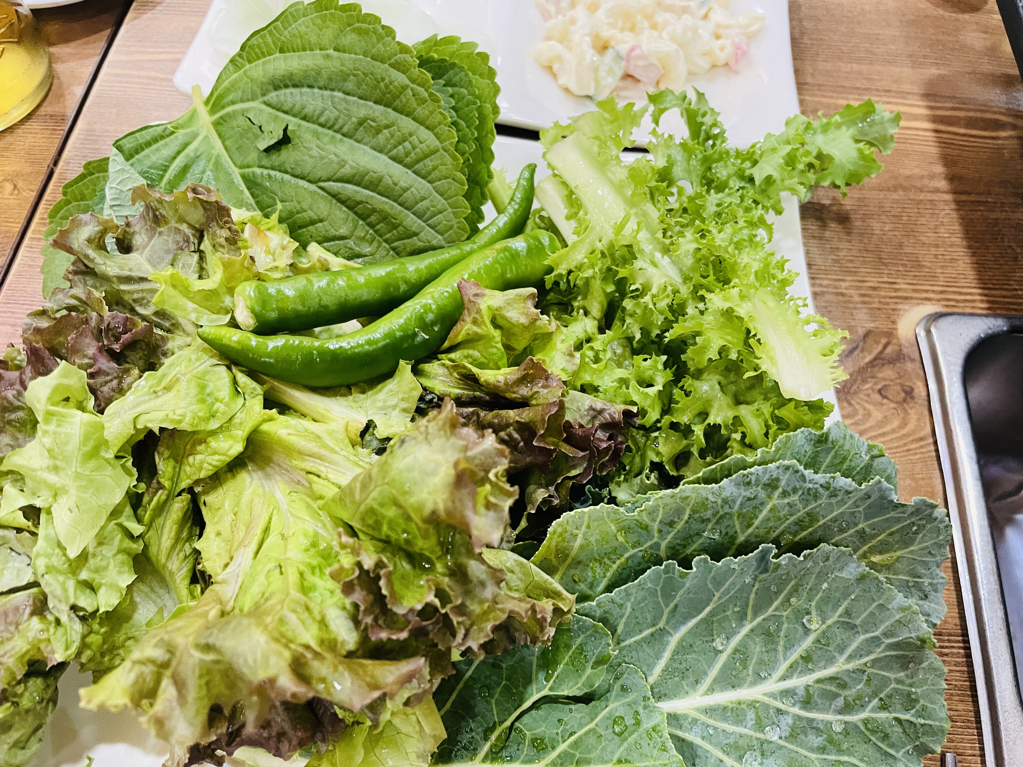 야채, 밑반찬뿐만 아니라 공짜로 구워먹을 수 있는 것들이 많이 있어요 ㅎㅎ