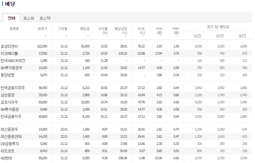 - 금리 인상 시기에는 금융, 은행, 보험주, 경기민감주, 배당주에 투자해야한다고 하는데 국내 고배당주에는 무엇이 있을까?