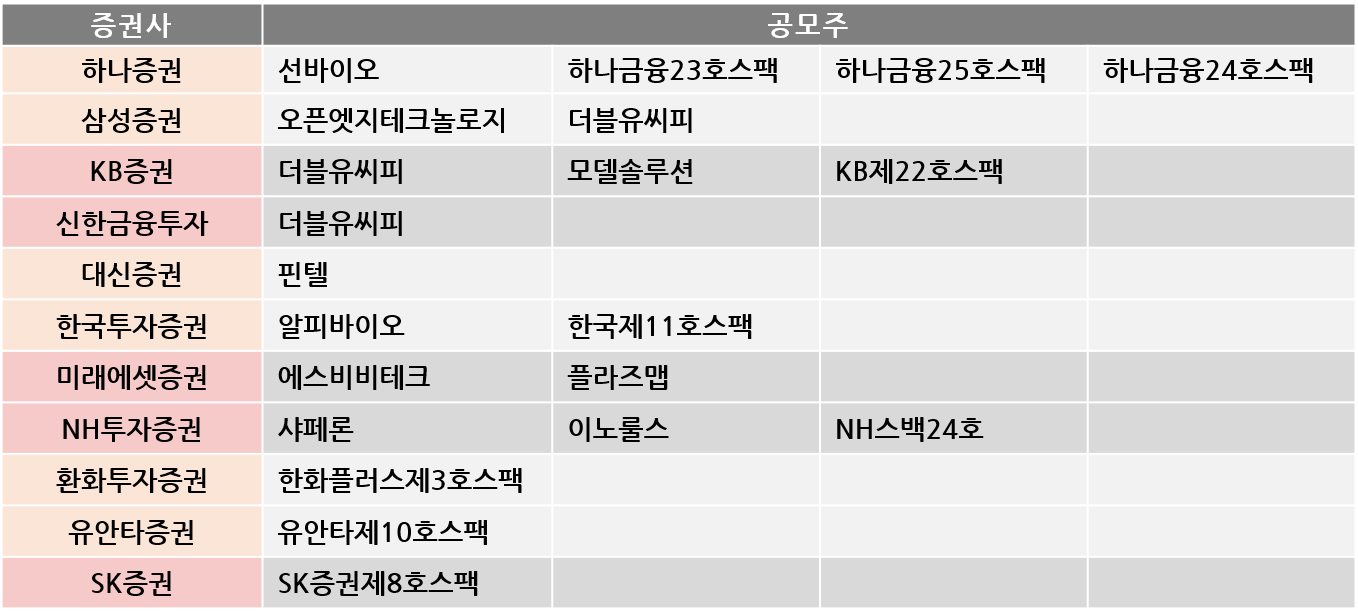아래는 증권사별 공모주 정리해보았어요~