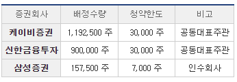 · 증권사 및 증권사별 배정 수량: