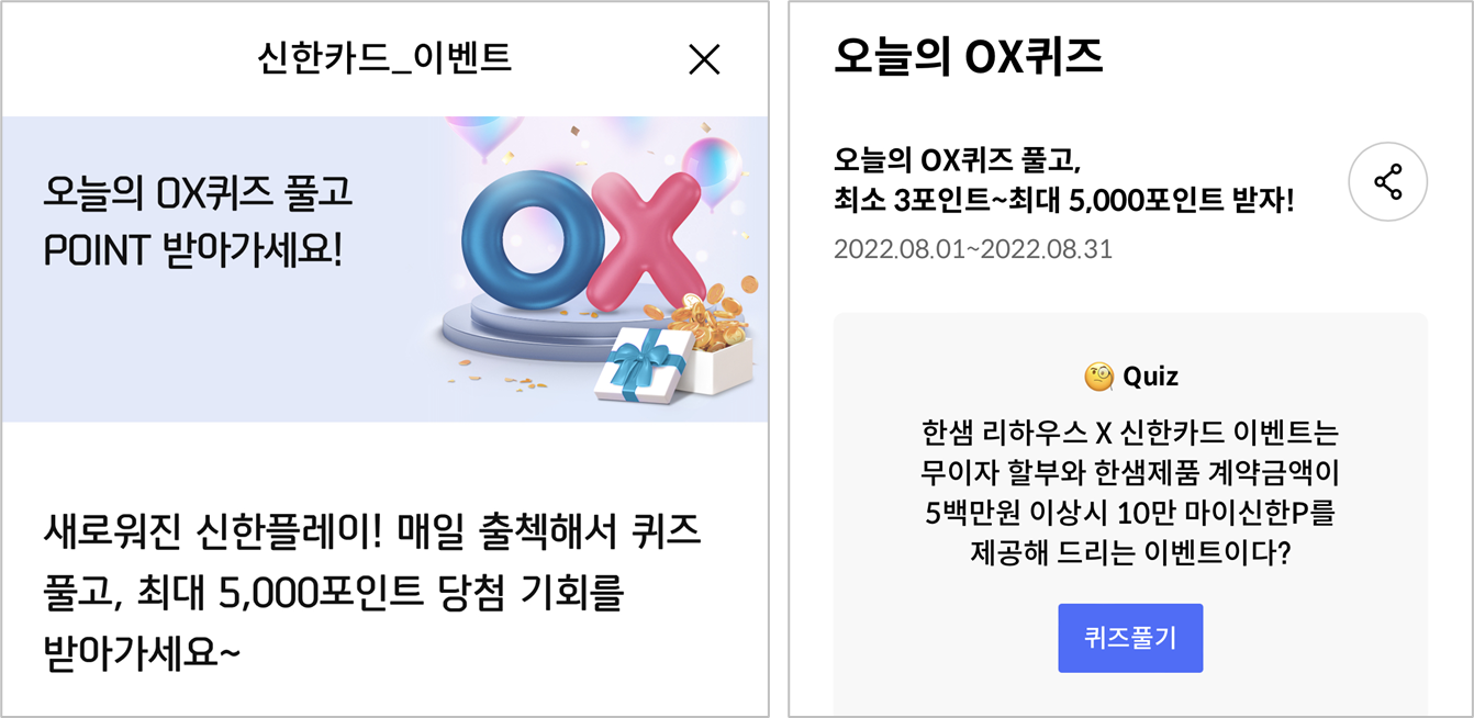 | 8월 24일 신한 플레이 OX 퀴즈 / 신한 쏠 야구상식 쏠퀴즈 정답 (0) | 2022.08.24 |