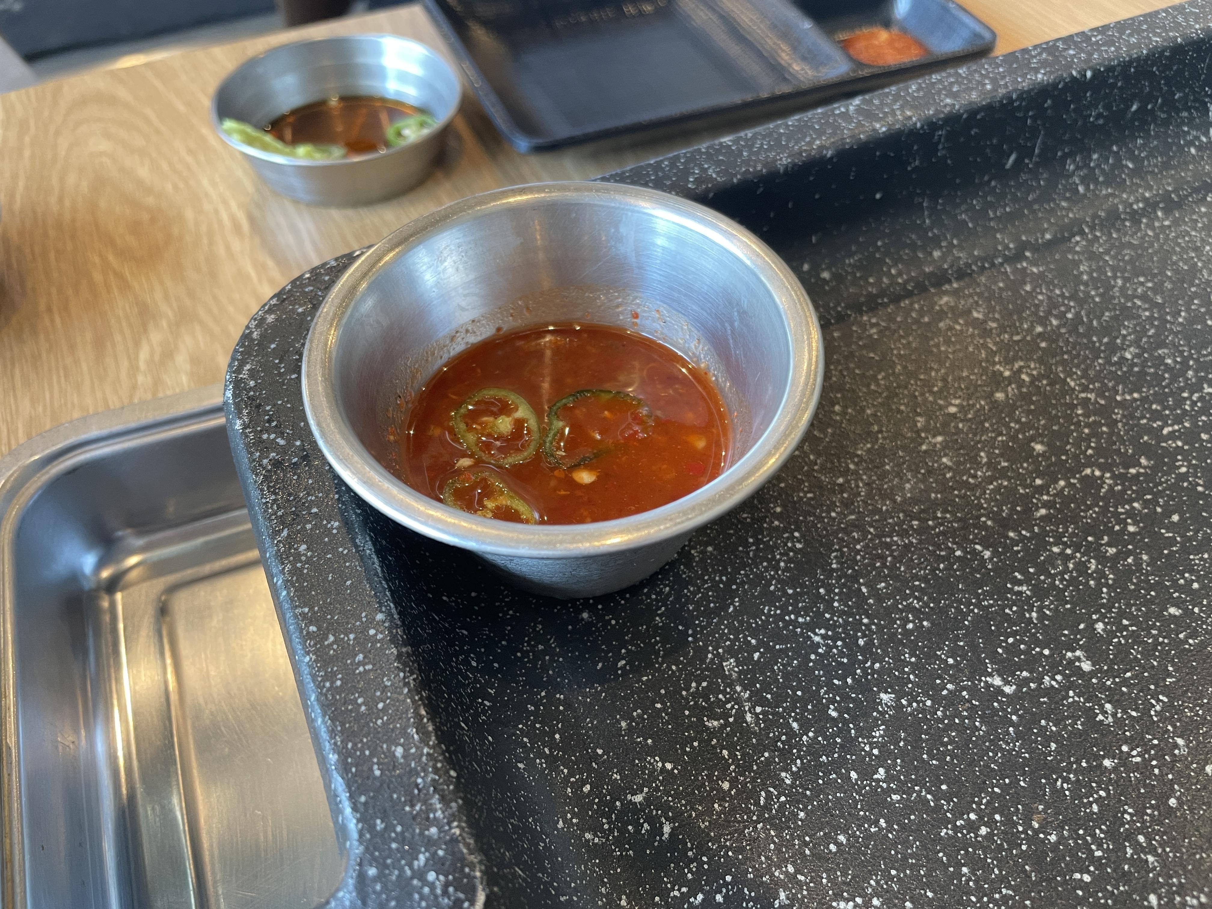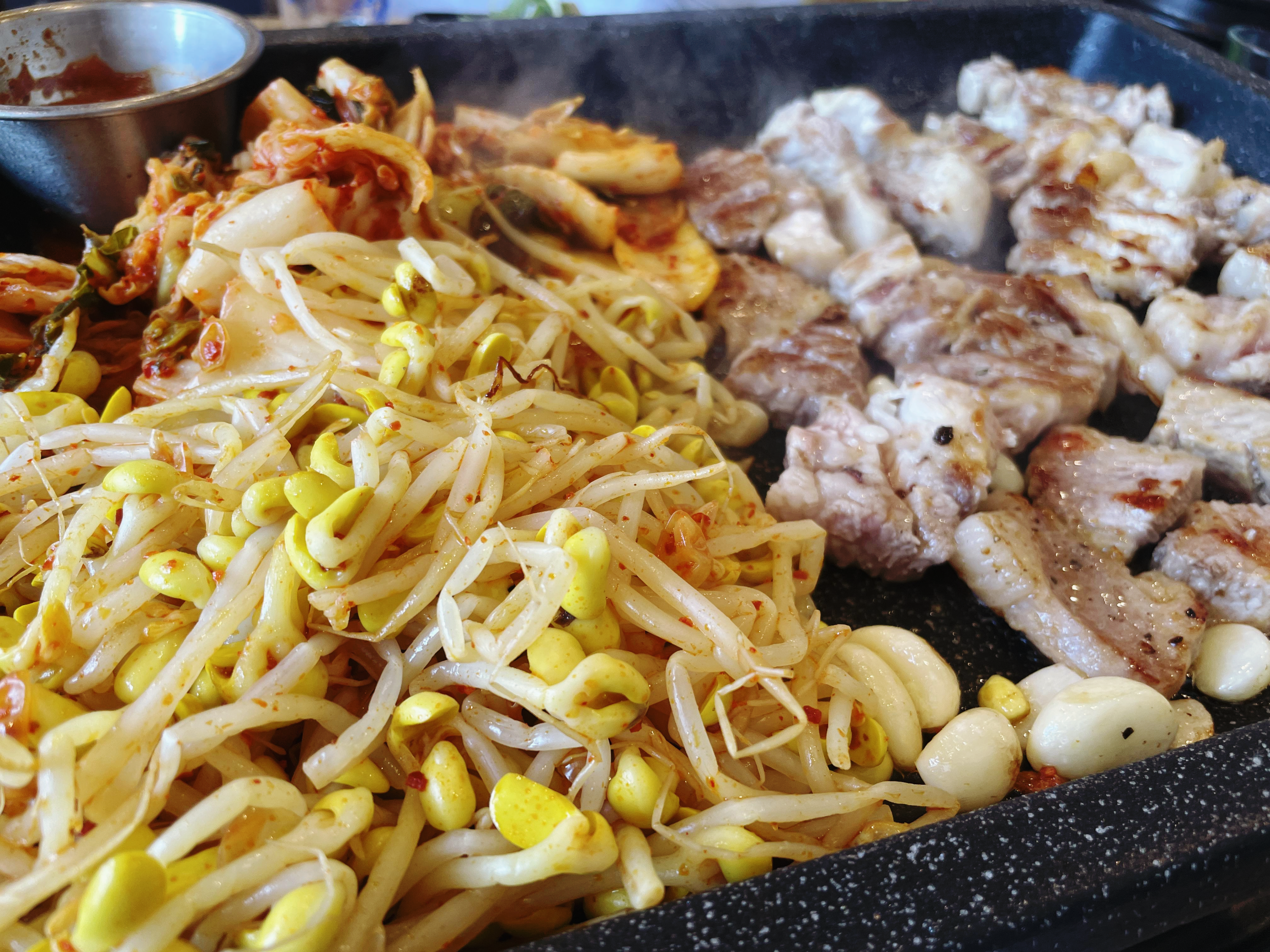 불판이 넓ㅅ어서 고기 올리고 한쪽에 콩나물이랑 김치 올려도 전혀 좁지가 않더라구요.
