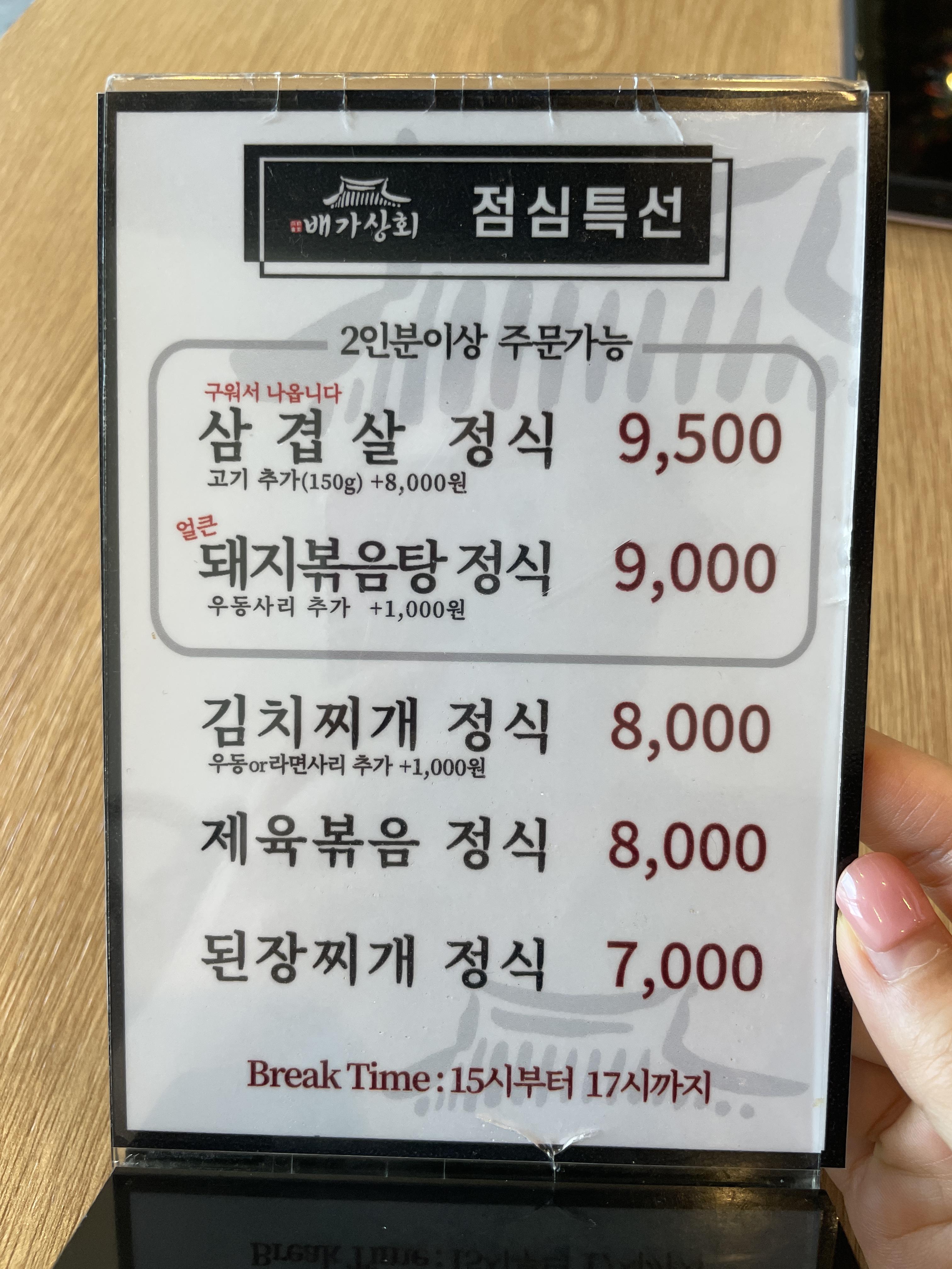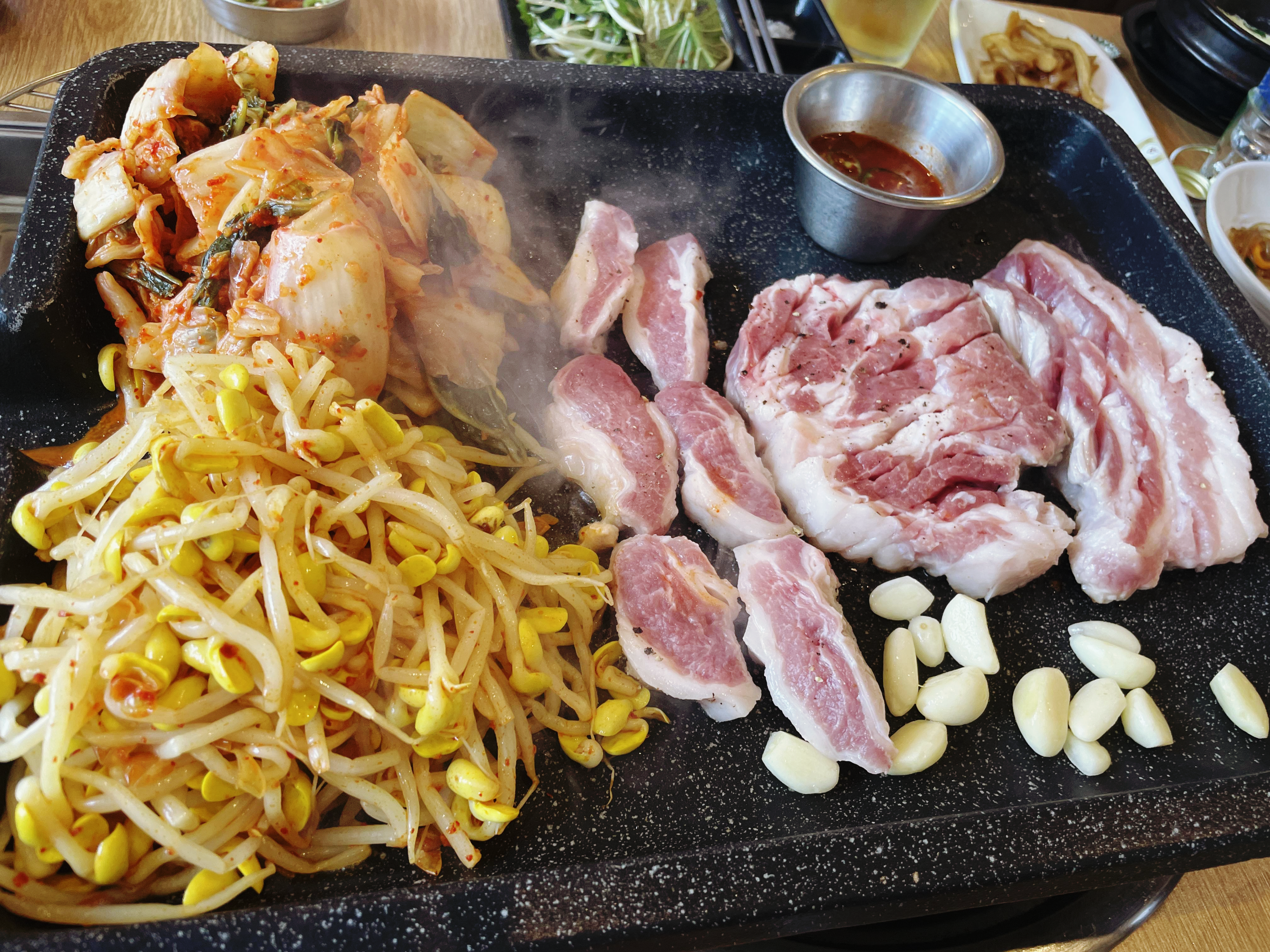 주말에도 정식이 되서 신기했는데 삼겹살에 된장찌개? 밑반찬까지 엄청 푸짐하게 나와서 놀랐던 기억이 ...