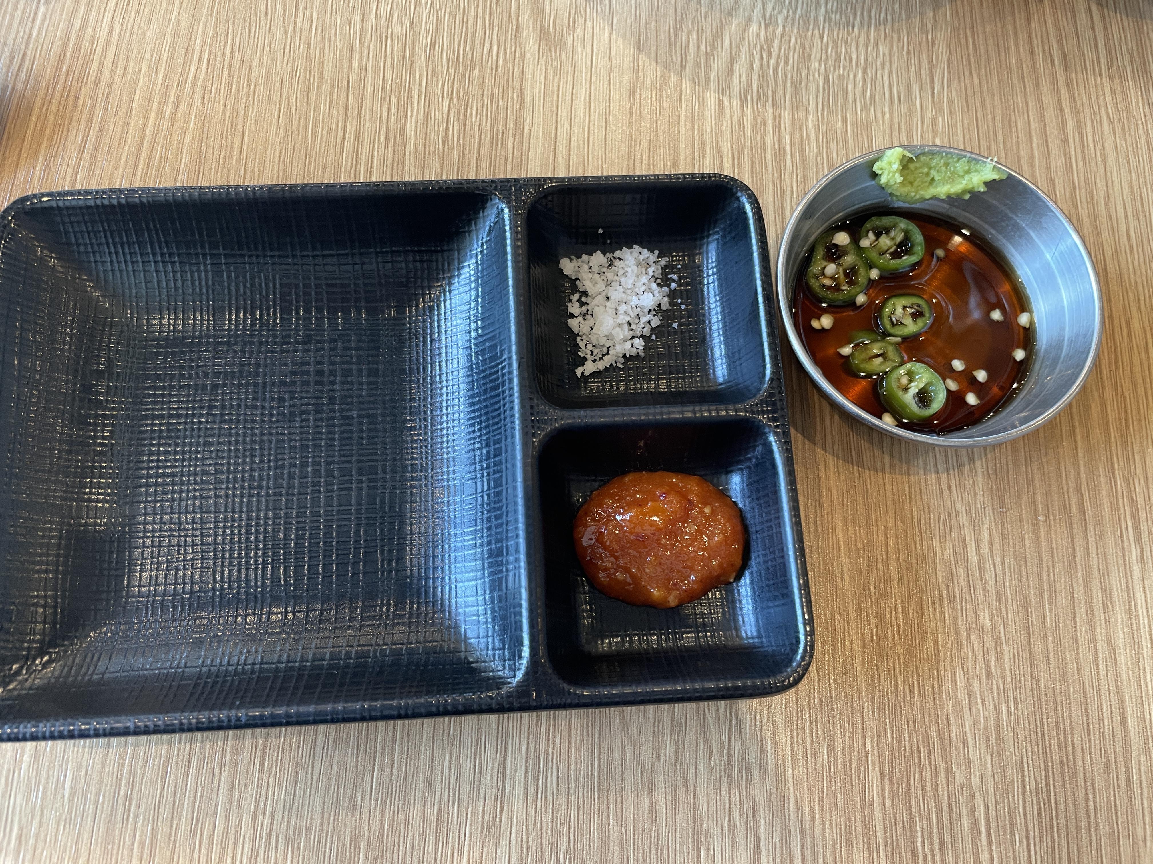 '배가상회' 좋은 점은 요렇게 앞접시마다 개인용 쌈장, 소금이 나와서 편하게 먹었어요.