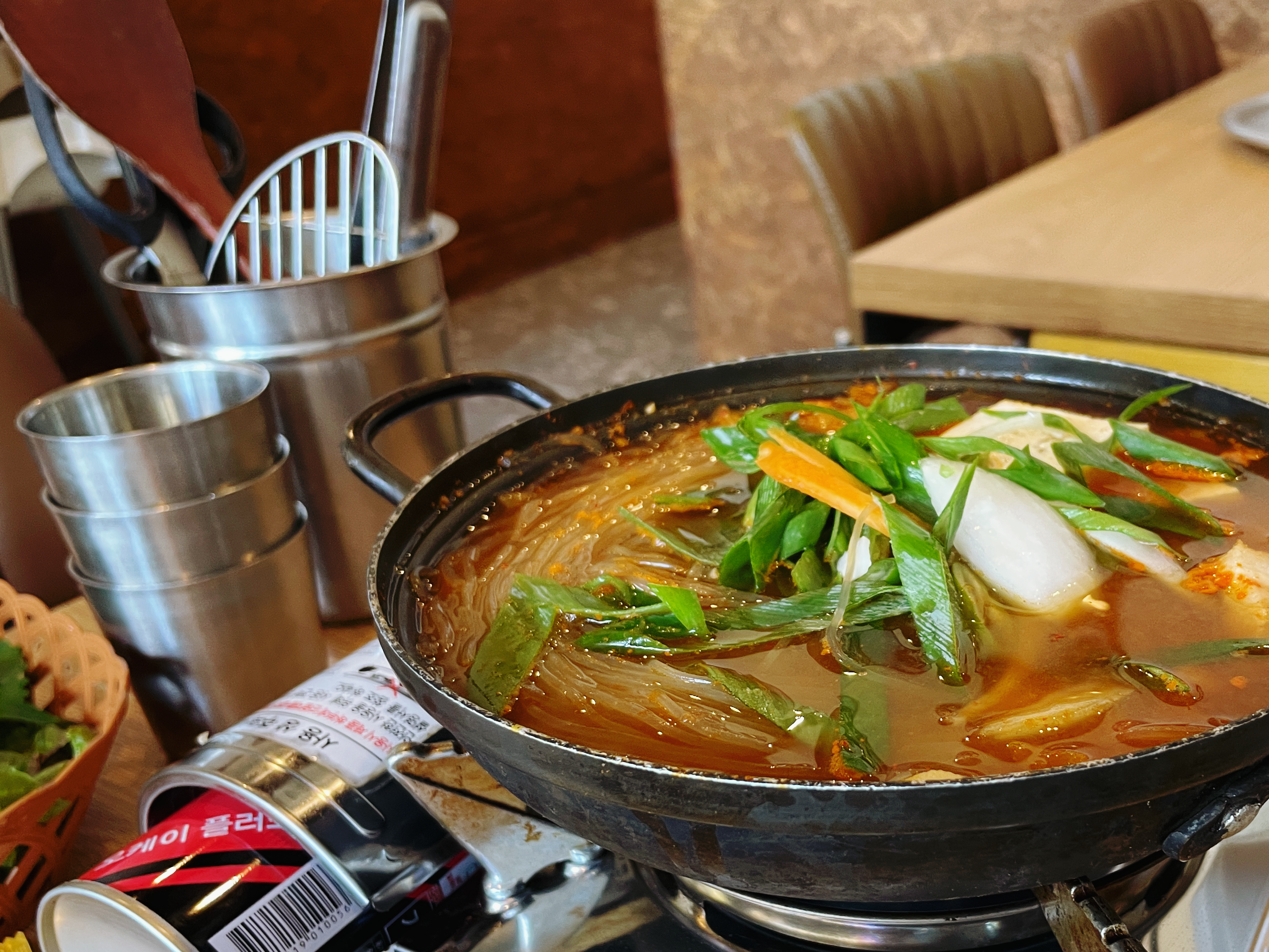 김치찌개에 돼지고기, 두부, 당면까지 푸짐하게 들어가 있었고 얼큰 칼칼해서 넘 맛있게 먹었어요.