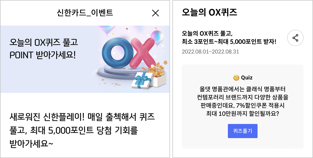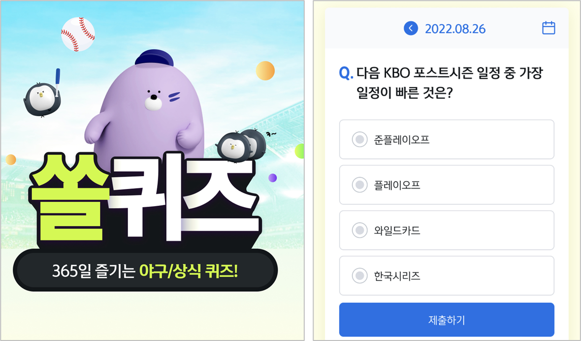 | 8월 25일 신한 플레이 OX 퀴즈 / 신한 쏠 야구상식 쏠퀴즈 정답 (0) | 2022.08.25 |