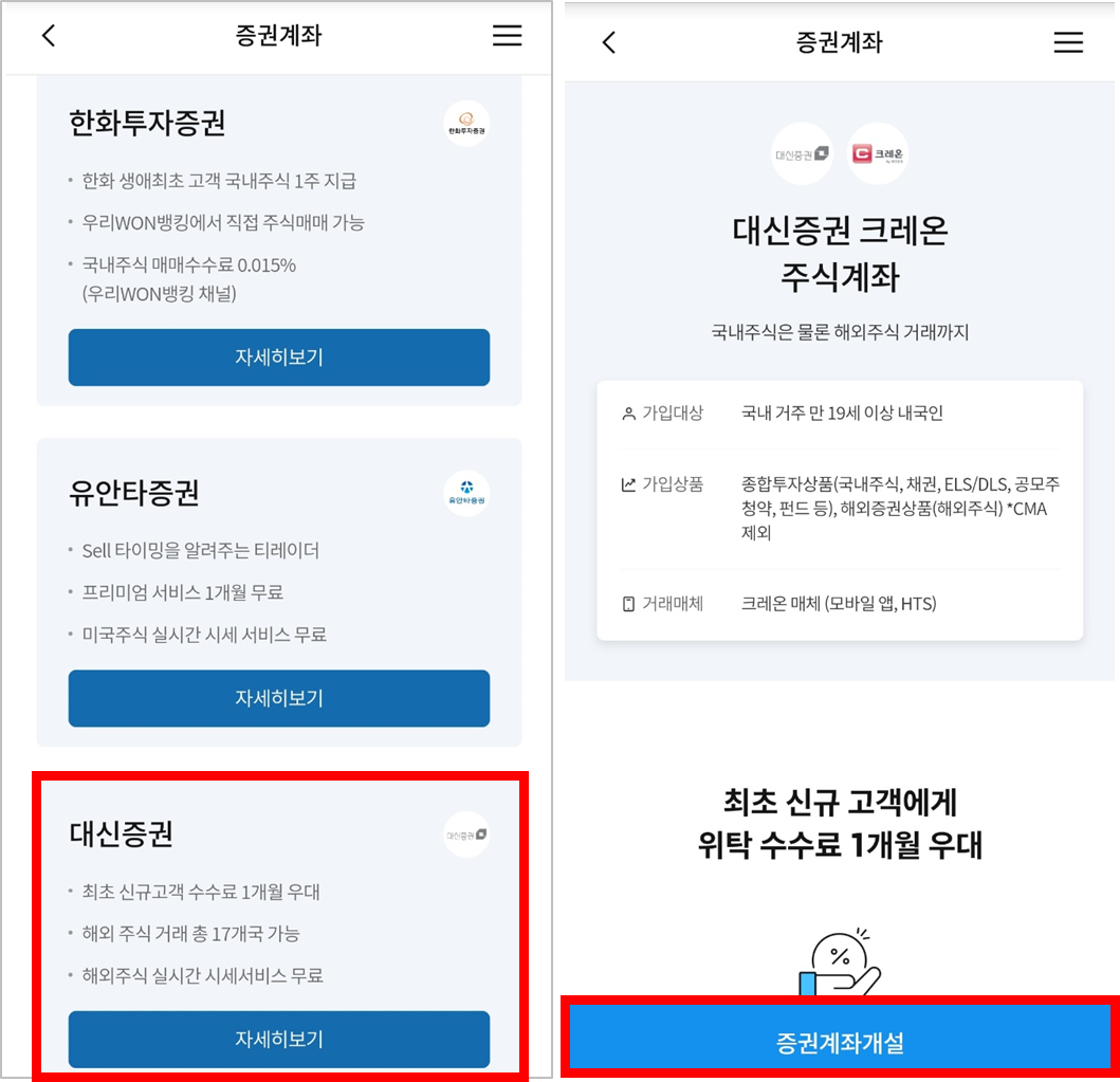 -여러 증권사 중 맨 하단의 '대신증권' 자세히 보기 눌러주세요.