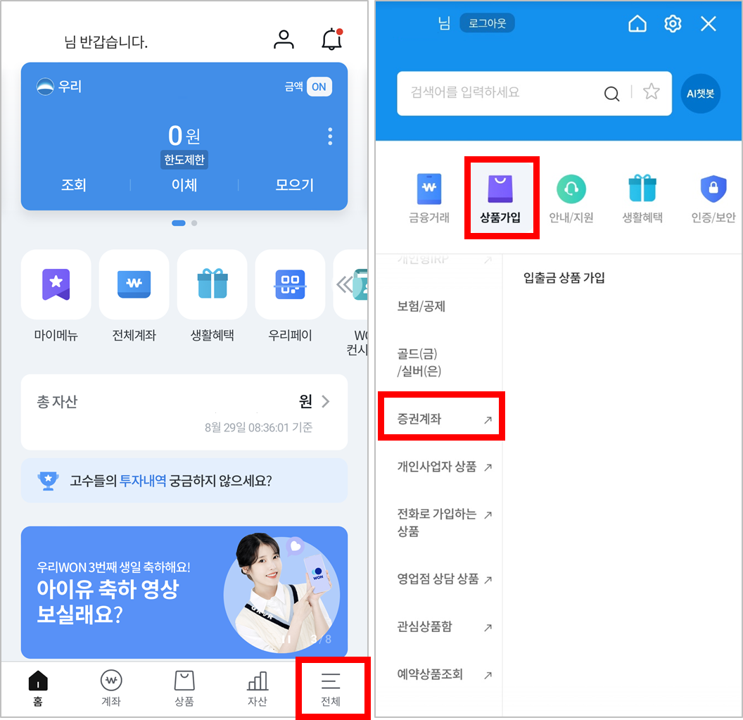 1. 우리 WON 뱅킹 어플 접속