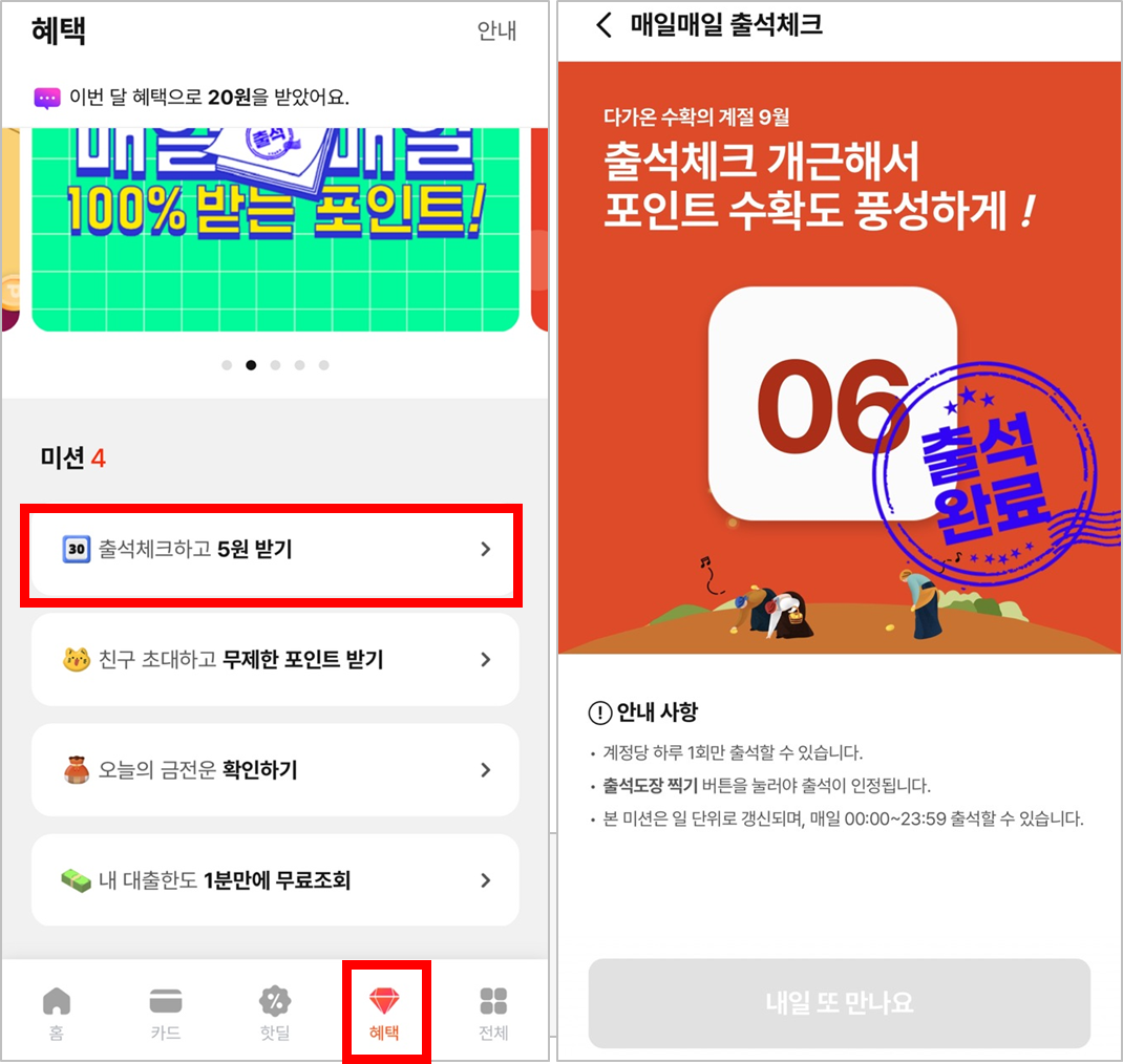출석체크는 5원이라 너무 작지만 ㅠㅠ