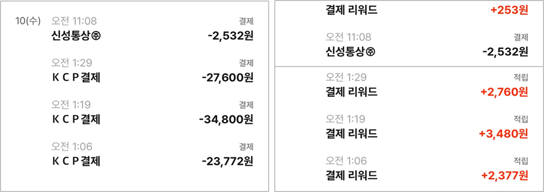 저는 그동안 몇달 쓰면서 한번도 10% 적립 못 받았는데
