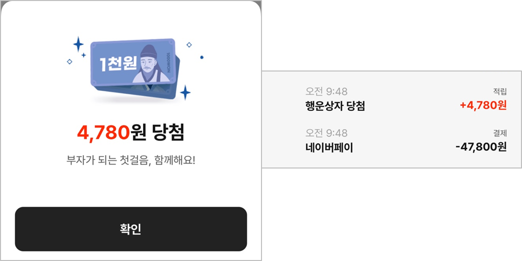100원은 종종 당첨이 되는데 100원 이상은 한번도 된 적이 없는 똥손이지만