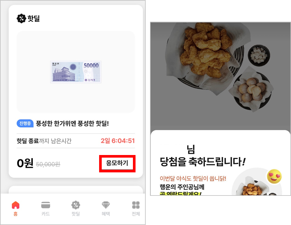 매주 다양한 상품들로 핫딜 응모를 하고 있어요.
