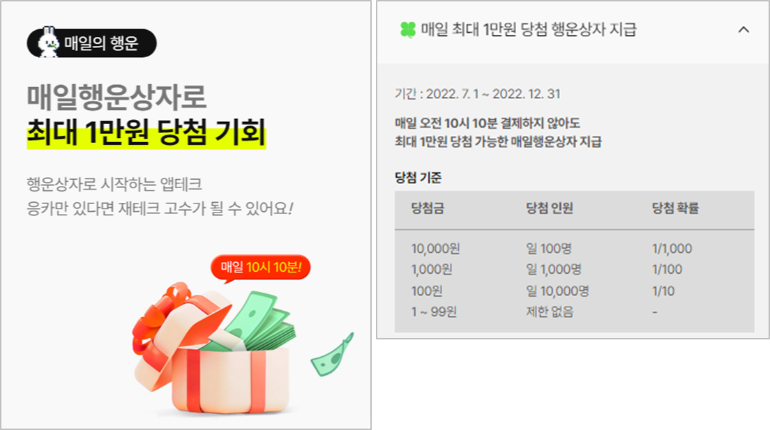 행운상자는 1원~1만원까지 있고 결제를 하지않아도 지급이 된답니다.