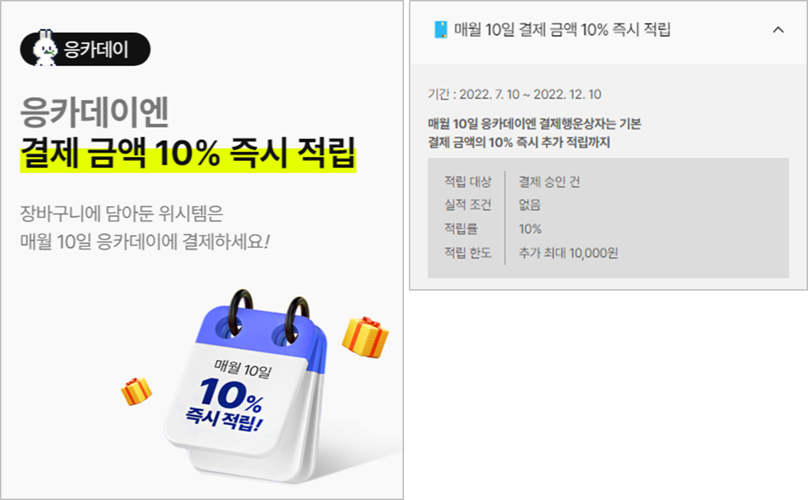 2. 응카데이(매달 10일 결제 금액 10% 적립)