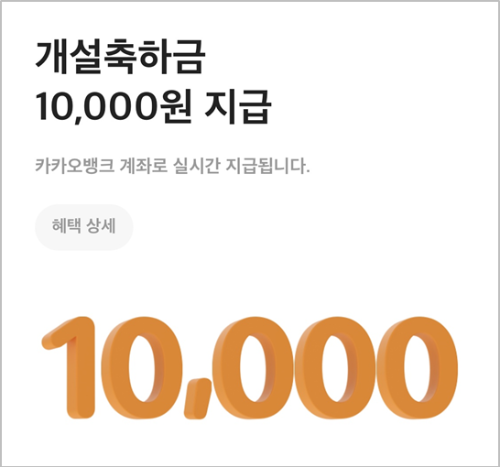 신규 이벤트로 가입시 현금 1만원을 바로 카카오뱅크 계좌로 넣어주고