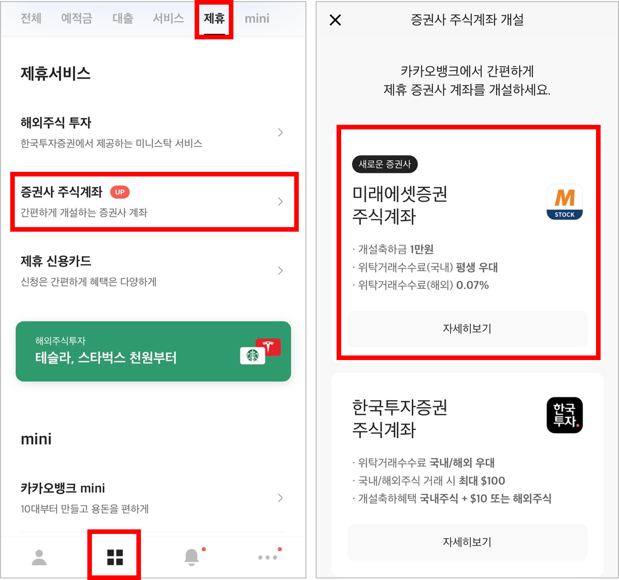 이번달에 카카오뱅크 연계 증권계좌에 '미래에셋증권' 이 새롭게 생겨났더라구요.