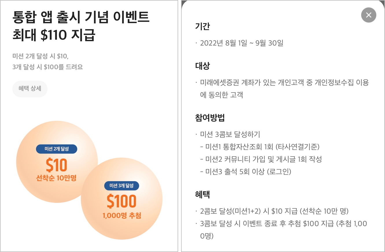 -미래에셋증권에서 미션 달성을 하면 추가로 $10 받을 수 있는 이벤트가 있으니 꼭 참여해서 줍줍하도록 하세요~