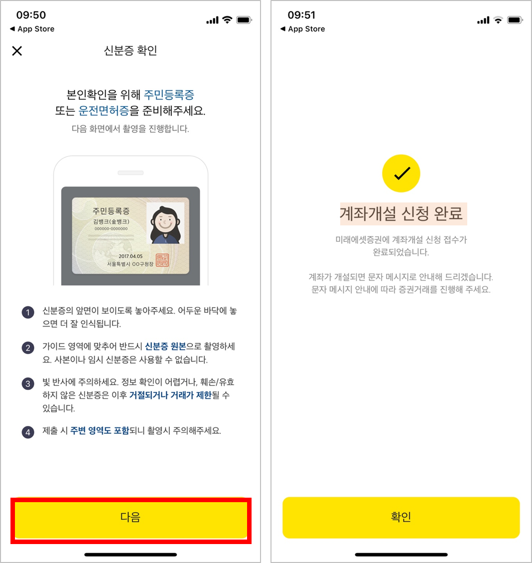 -신분증 확인까지 하면 계좌개설 신청이 완료되었어요.