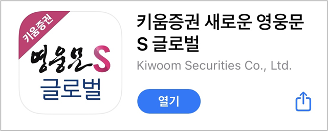 키움증권 영웅문S(국내) / 영웅문S 글로벌(국외)로 어플이 2개로 나눠져요.