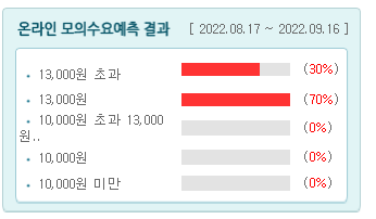 수요예측결과 13,000원 비율이 70%, 13,000원 초가가 30% 비율로 공모가액은 13,000원으로 결정되었습니다.
