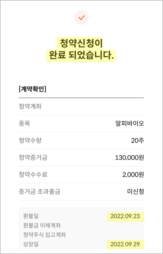 알피바이오는 환불일 9월 23일(금)이며 상장일은 9월 29일(목)입니다.