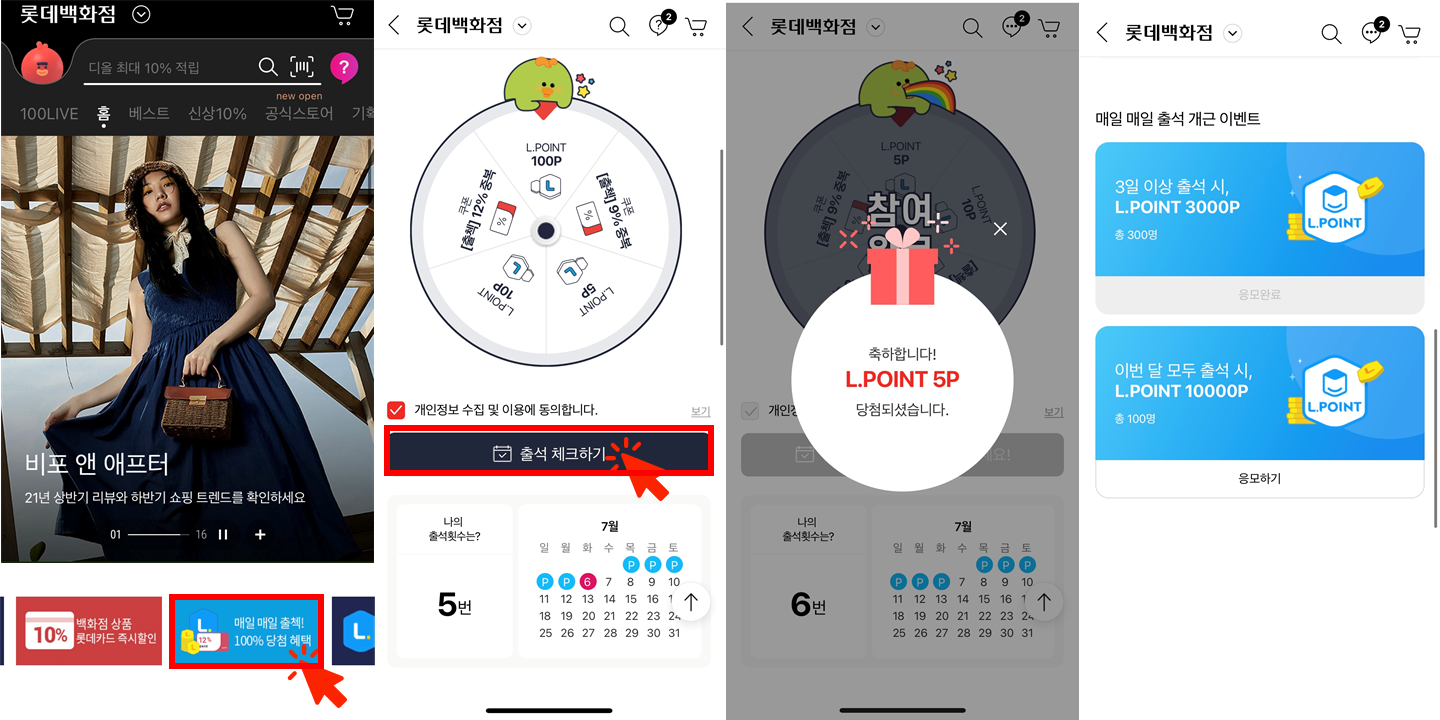 - 5회 출석시 500포인트 랜덤 추첨 (100명)