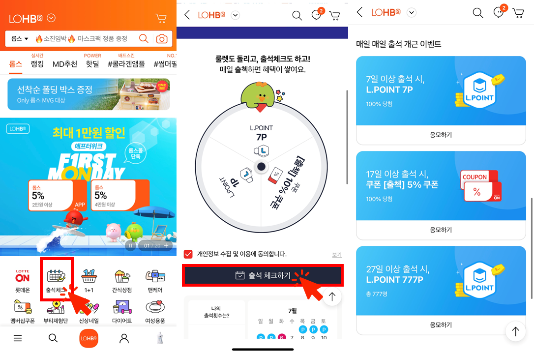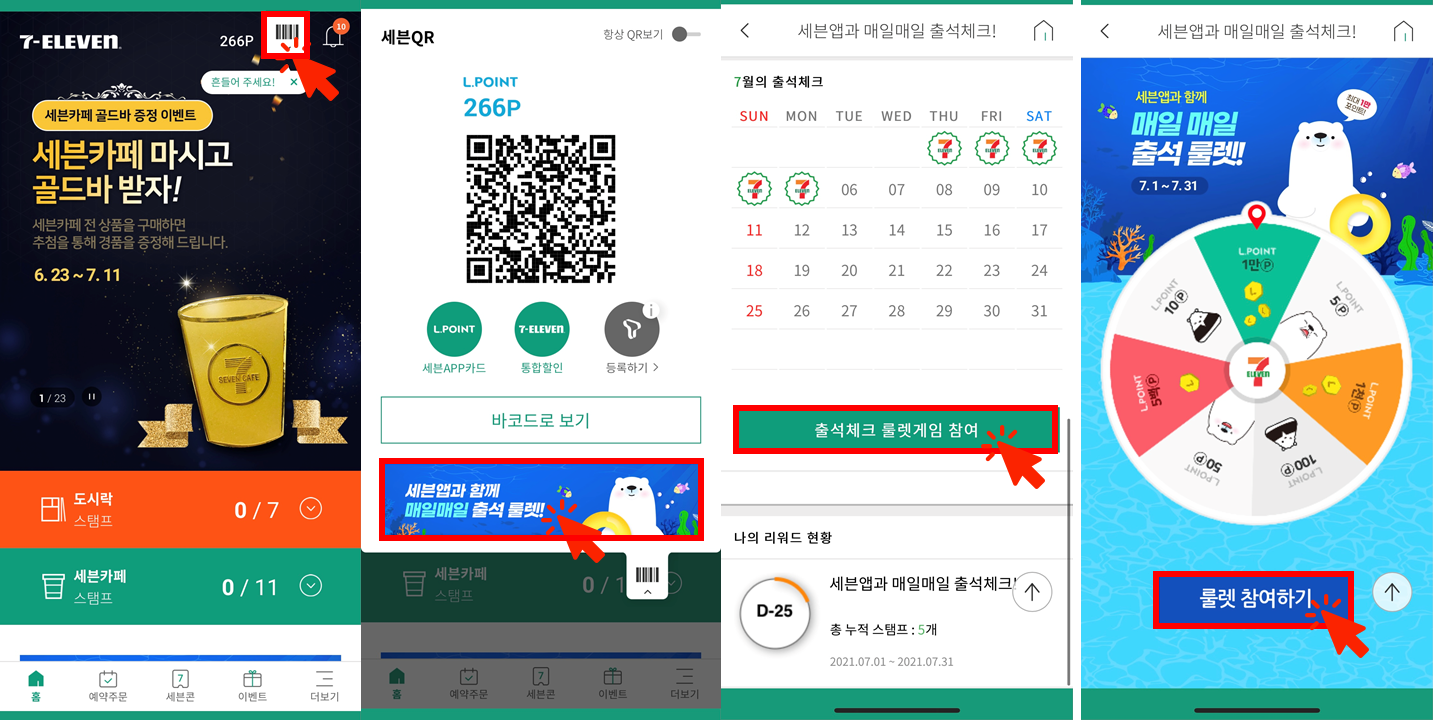 - 7일 출석시 7포인트 100% 당첨