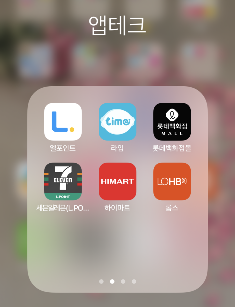 총 6개 앱(엘포인트, 라임, 롯데백화점, 세븐일레븐, 하이마트, 롭스)으로 적립하고 있답니다.